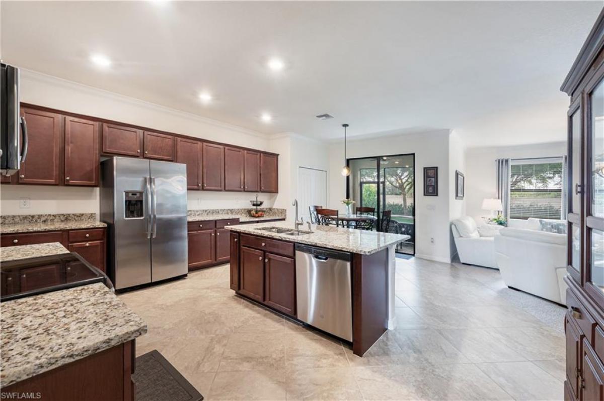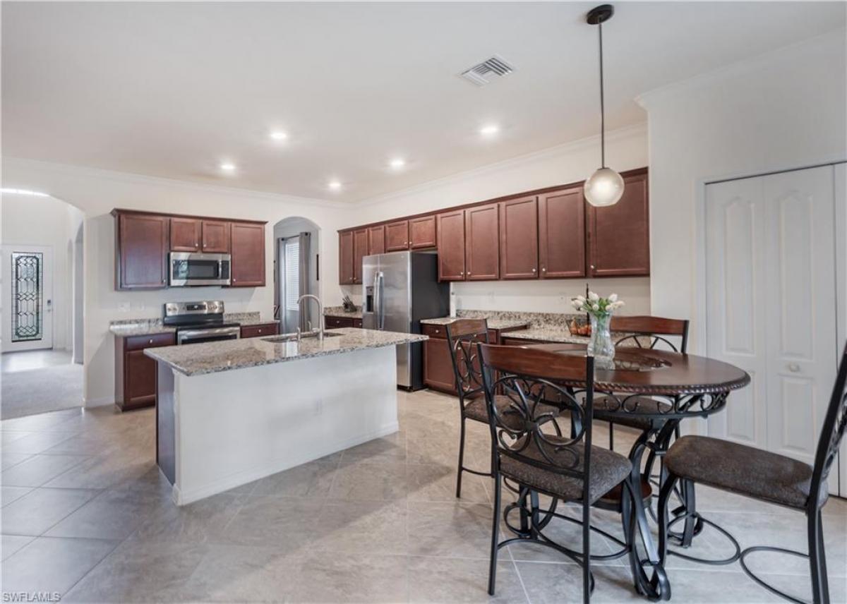 Huge price improvement!!! Lowest priced 5 bedroom + den, 3 car tandem garage home in Bent Creek Preserve. This is a beautifully maintained MOVE IN READY two-story residence in a prime North Naples location with access to top-rated schools, shopping and dining. Enjoy the large kitchen that opens to the family room, center island and breakfast area. Great for a large family, with a FIRST FLOOR bedroom and full bathroom for guests or for those unable to do stairs. The 2nd level offers 3 extra bedrooms and a den to work from home or play area for kids. Bent Creek Preserve is a resort-style, gated community offering unmatched amenities including a lakeside clubhouse, fitness center, steam room, showers, billiard room, event center, resort pool and spa, tennis, pickleball, bocce ball, half-court basketball and a playground.