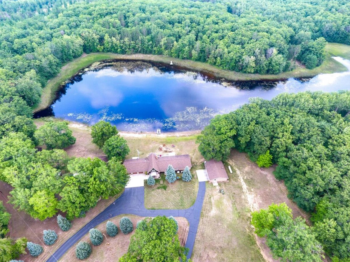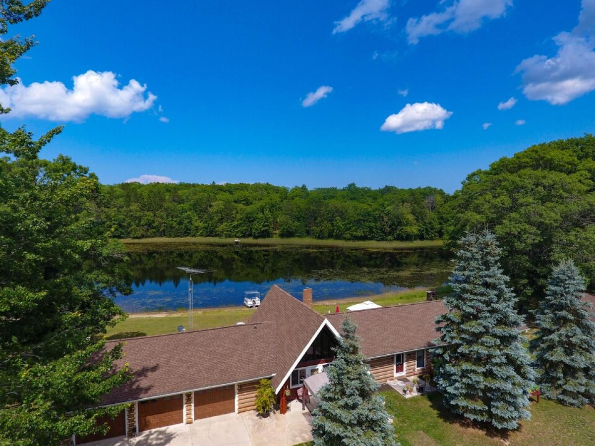 Unique find! 98 acres of woods, cedars for wildlife and groomed trails throughout property. 15+ private whole lake for excellent fishing and kayaking. Large home with Perma Log and 5 garages, very easy to maintain. Walkout finished basement with 8 person dry/wet sauna and half bath. Generac 22K generator also a Well Connect Geo Thermo 2.5 Ton for your air and heat. Heat pump in Great Room, large flush wood insert Hybred-FYRE w/door 83,220 BTUS. Complete all house water system for carbon, lead, sediment and I springs water system also. Driveway sealed every other year and in great condition. Had all roofs checked by licensed roofer in 2023 everyone looks great. Pre approval/ proof of funds prior to showing Seller is a licensed Realtor
