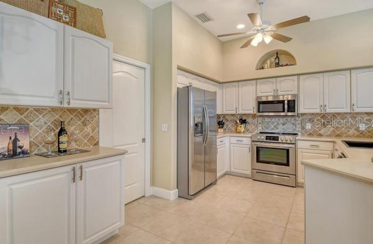 RENTED FEBRUARY 2026, NOT AVAILABLE OFF-SEASON: Spacious single-family home at Stoneybrook Golf & Country Club situated in the center of the cul-de-sac offers stunning views from the amazing, seamlessly screened pool cage, creating a virtual oasis with overflow spa, underwater lighting, outdoor kitchen, and ample covered seating and dining area. Double entry doors greet you as you enter the home, and a picture-perfect view of the pool is directly ahead through the sliding glass doors of the piano room. To the left is the dining area and the kitchen is open to the great room also offering an amazing view of the pool area. There are three bedrooms on the left wing of the home, and two full baths, one leading out onto the pool area. The right wing of the home features a primary suite with king bed and lots of windows offering the same pool view and a primary bath with twin sinks and a beautifully tiled walk-in shower with rain head fixture and hand-held shower wand. The laundry room and office are off the kitchen with access to the three-car garage with charging station. The home has a new roof and all new hurricane-proof doors and windows throughout. A temporary golf transfer is available if desired for a fee payable at the clubhouse (check with the administration office for fee schedule). Stoneybrook G&CC is one of Sarasota's most popular golf and tennis clubs with a fully modernized course redesigned by Kipp Schultes said to be one of the best on the West Coast of Florida. There are several Har-Tru tennis courts, pickleball courts, and a state-of-the-art clubhouse and restaurant featuring fine and casual dining. The community borders the Legacy walking and biking trail, and it is less than 15 minutes to the sugary sandy beaches of Siesta Key, the village shops and restaurants.