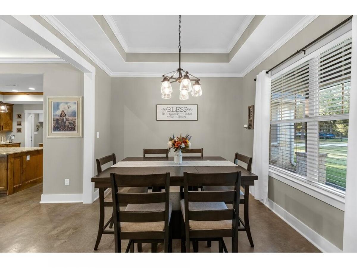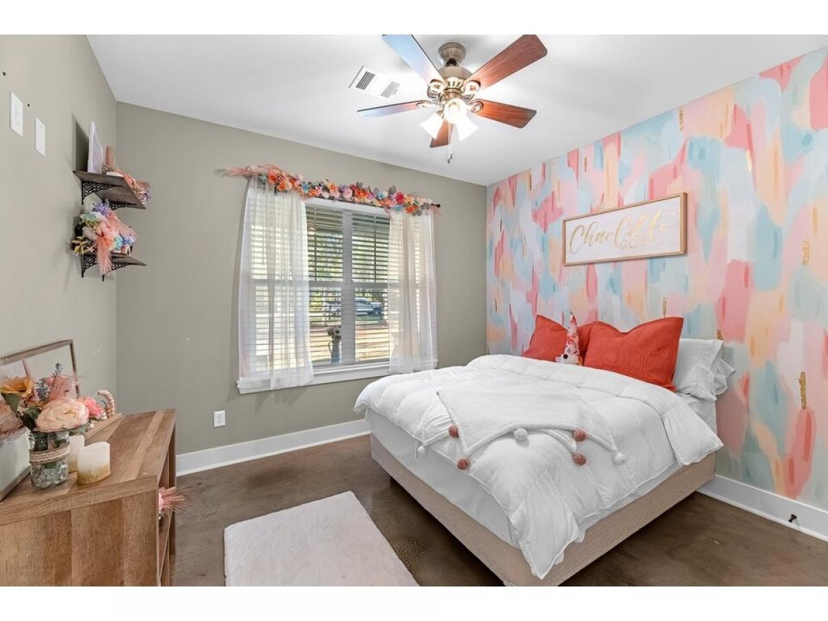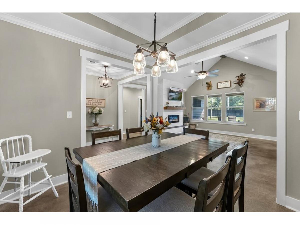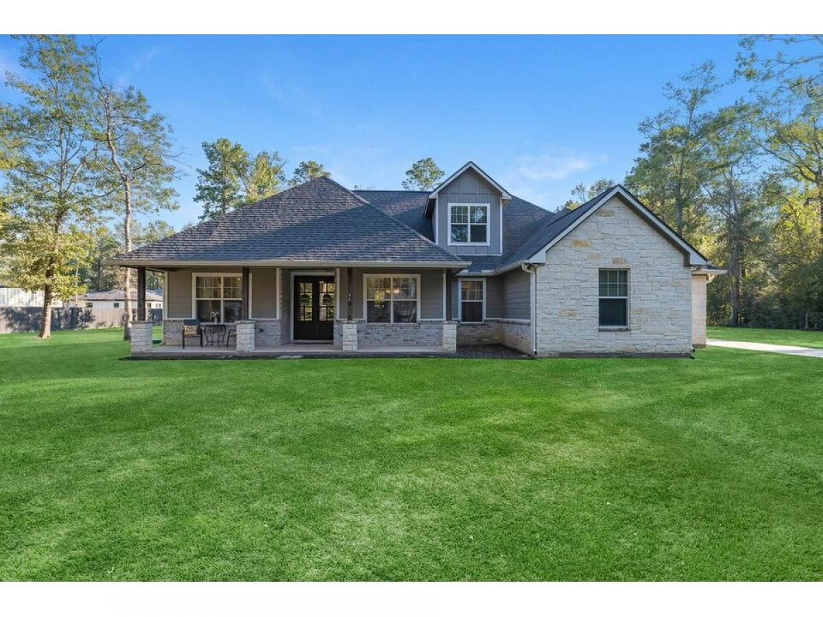 This beautiful 1.5-story home sits on a full acre offering 4 bedrooms, and 2.5 baths. Featuring high ceilings and concrete floors throughout, creating a modern, open feel. The gourmet kitchen is equipped with granite countertops, a charming farm sink, and ample cabinet storage. Water filtration system installed, built out attic for storage. Natural light floods the interior, highlighted by a grand double front door. Two AC units to maximize comfort inside the home. Outside, enjoy a covered front porch, a large back patio, and a fully fenced yard with included play structure. The exterior showcases brick, and stone finishes, while a Porte-cochere and double driveway offer ample parking. Backyard is ready for your shop today!