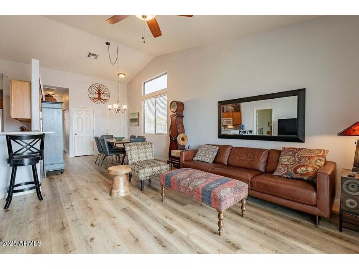 If your looking for a special place to live, this is it. Permanent home or winter retreat. This home is Immaculately kept in one of Gold Canyons smaller gated communities. It is nestled into the side of a hillside with a heated community pool. There have been some nice upgrades including AC, bathroom flooring, sinks and vanity. Vinyl plank flooring in all the main living areas. Generous size kitchen is a pleasure to cook in. The Sliding door is new bringing you out to the beautiful covered patio. Vista Point is one of the neighborhoods in Gold Canyon that are affordable with giving you the ambiance that Gold Canyon gives. Close to major freeways, golf, shopping and local sights including the Superstition Mountains and Lakes.