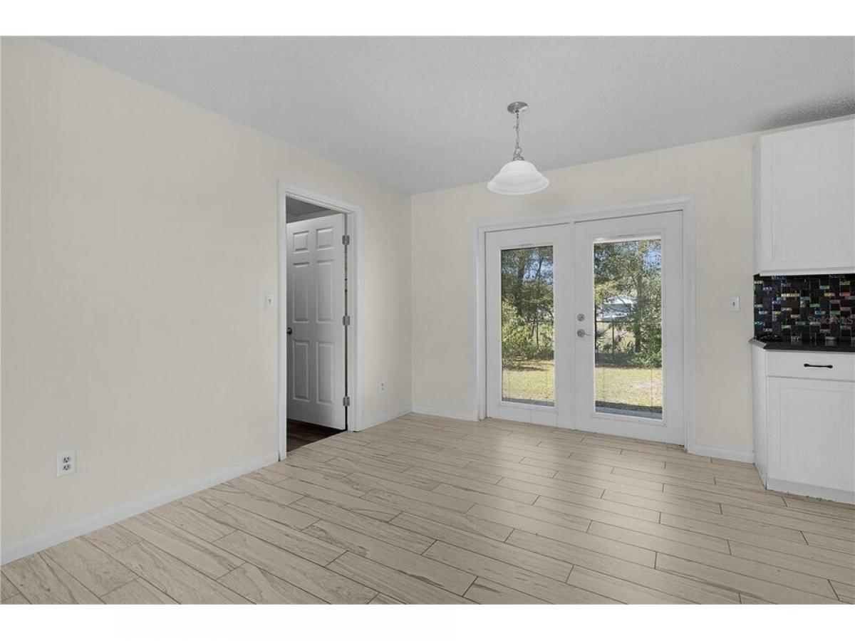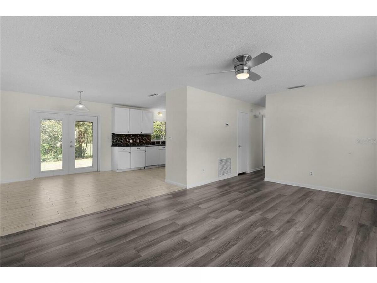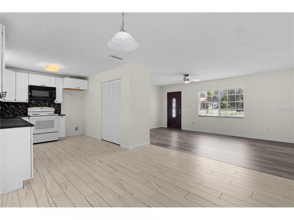 Under contract-accepting backup offers. Fabulous 3 bedroom, 1 frac12; bathroom block home nestled on a large corner homesite. Featuring a one car garage, private backyard with large shed. BRAND NEW ROOF 2/2025 and freshly painted exterior. Great primary home or investment property. This .30 acre (13,000 sq ft) sit in a nice neighborhood with NO HOA and no neighbors in the back (retention pond in back). Spacious living room just off the dining room that has easy access to the back yard through the French doors. The kitchen was updated a few years ago with wood-look tile floors, bead board cabinets, counter tops and matching back splash. Appliances included. Tile in the kitchen and vinyl floor throughout the rest of the house. The master bedroom has a half bath. Large laundry room with a BONUS office space with entrance or can be used for storage. All the windows have exterior mounts for the aluminum hurricane shutters. Partially fenced backyard. It is located near Lake Weir for fishing, boating, swimming and wildlife viewing.