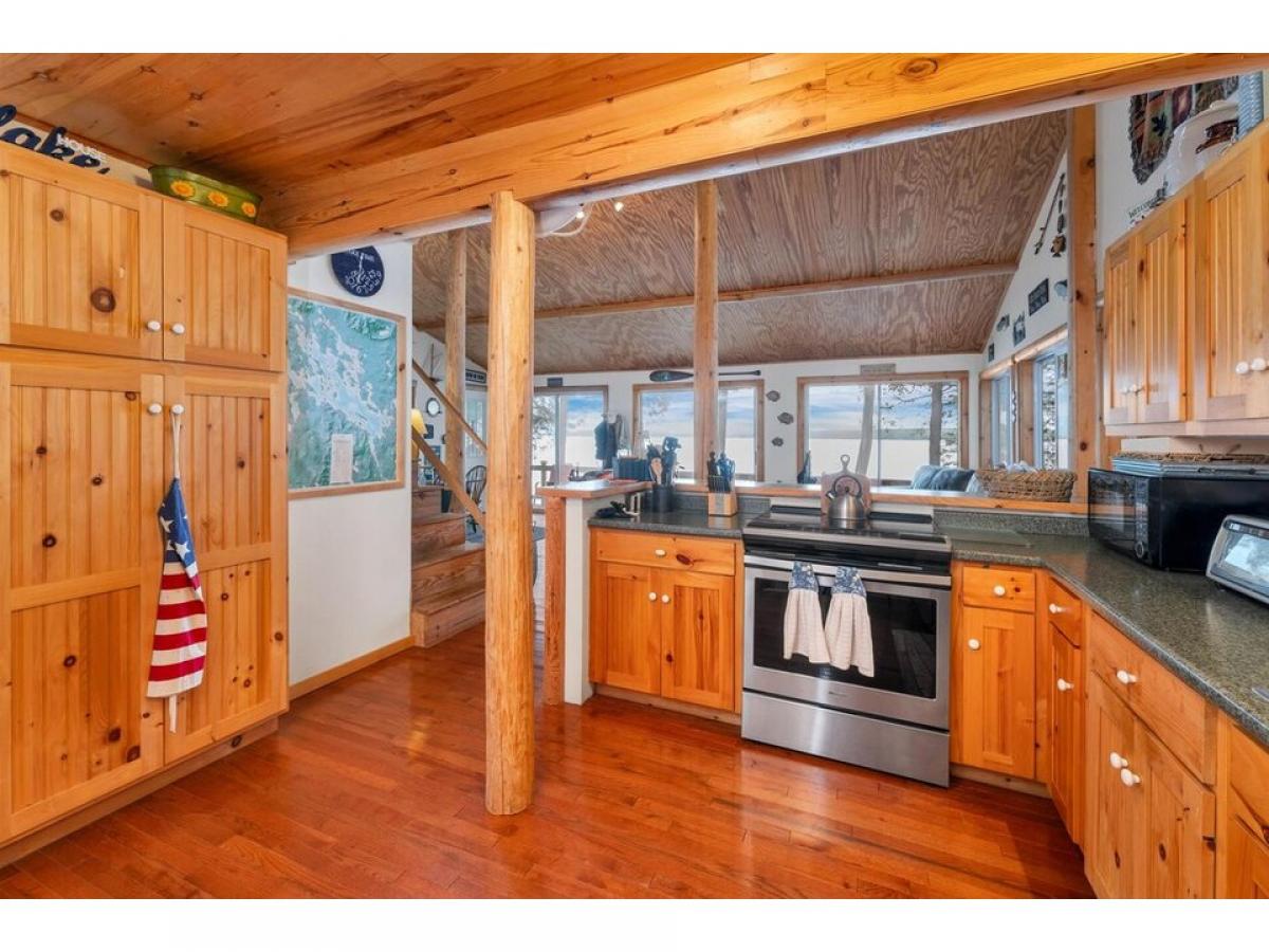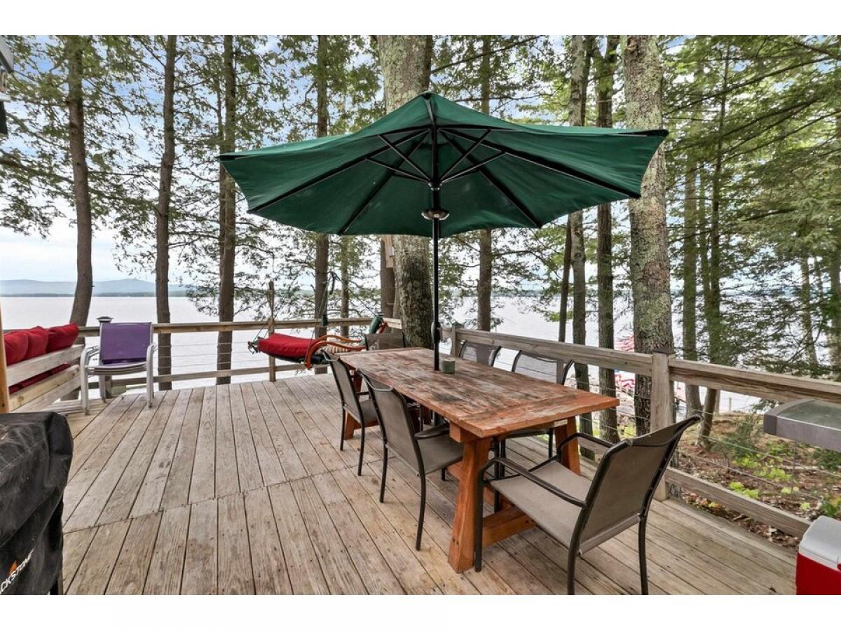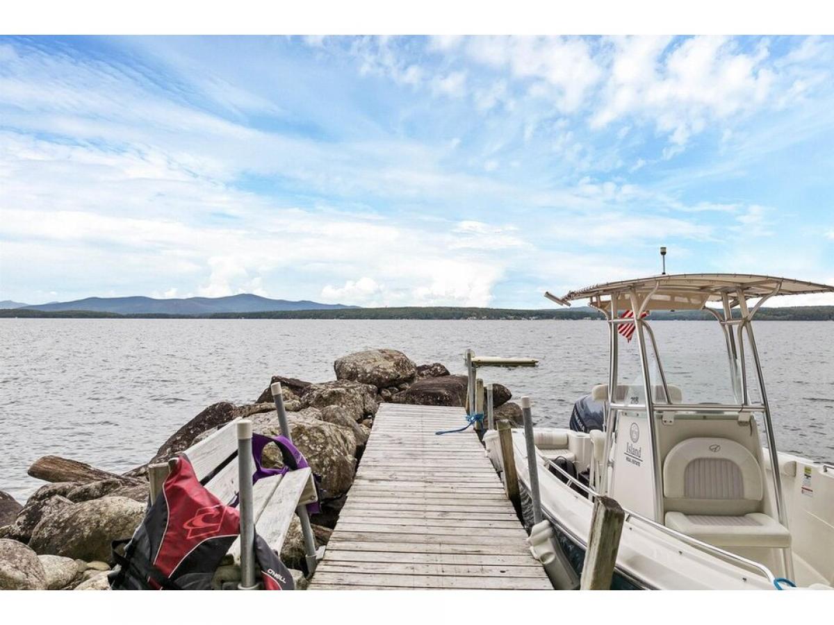 Welcome to the broadside of Rattlesnake Island, located on the stunning shores of Lake Winnipesaukee. This custom built post and beam home consists of 3 BR, 1 BA in the main part of the house and a spacious attached guest room with 1/2 bath and separate entrance. The home was created with an open concept to allow lake and mountain views whether in the kitchen cooking or relaxing in the roomy living area. Upstairs you#039;ll find 2 private bedrooms and a reading nook. This well thought out home is welcoming and comfortable. The property offers an abundance of outdoor living space, featuring a wrap-around deck perfectly designed for entertaining with plenty of seating, a counter height custom built double bin cooler on wheels, and a grilling station with all the tools. Another feature is the outside relaxation area, complete with two hammocks and a custom made queen size bed that hangs from the trees (truly one-of-a-kind). The shoreline boasts an extra-wide U-shape dock that accommodates 3 boats, a sandy bottom, and breakwater all with a 180-degree view spanning out to 3 mountain ranges. If you feel like getting away from the water, this property has direct access to the interior island trails, and from the very top you can see the whole lake and Mt. Washington. Rattlesnake Members have access to Rattlesnake Landing on the mainland consisting of 2 docks, a launching ramp and 2 parking lots. It#039;s time for you to be on island time!