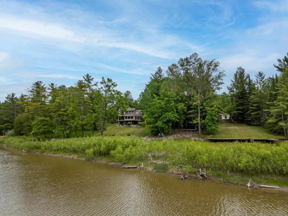 Welcome to your exquisite, contemporary, custom designed, Up-North lake house retreat on all-sports Smallwood Lake! Every opportunity to showcase the stunning views was taken advantage of by this stylish and thoughtful design featuring gorgeous windows, skylights, unique lofted spaces with lucite spindle rails and expansive decking complimented with railed glass deck panels. Step inside the spacious open concept kitchen/dining area and make your way to the show stopping living room highlighting a gas log fireplace, beautiful window wall and impressive circular staircase leading to your remarkable balcony library. 2 of the 3 bedrooms offer private outdoor terrace areas and the third bedroom, currently used as an office/sitting area, is lofted above the dining room. The upstairs master provides a full en suite and walk-in closet. Downstairs you will find a family room with walk-out patio access, laundry room with a toilet and a micro garage space with overhead door providing tons of storage space and the ability to have a dog washing station. There is a 2 car attached garage and a 3 car detached garage with an upstairs guest apartment or artists studio for you to finish to your liking featuring a bathroom, kitchenette and office space with tons of natural light flowing through the beautiful sky lights. The landscaping is spectacular and you will fall in love with the brick paver driveway, rock garden accents and the backyard patio pond feature. Water levels are currently lowered for dam improvements, but you can still enjoy kayaking, fishing and swimming for now. Please go to: https://www.four-lakes-taskforce-mi.com for the most up to date information regarding lake level, assessments and updates on dam construction. Schedule your personal showing today!