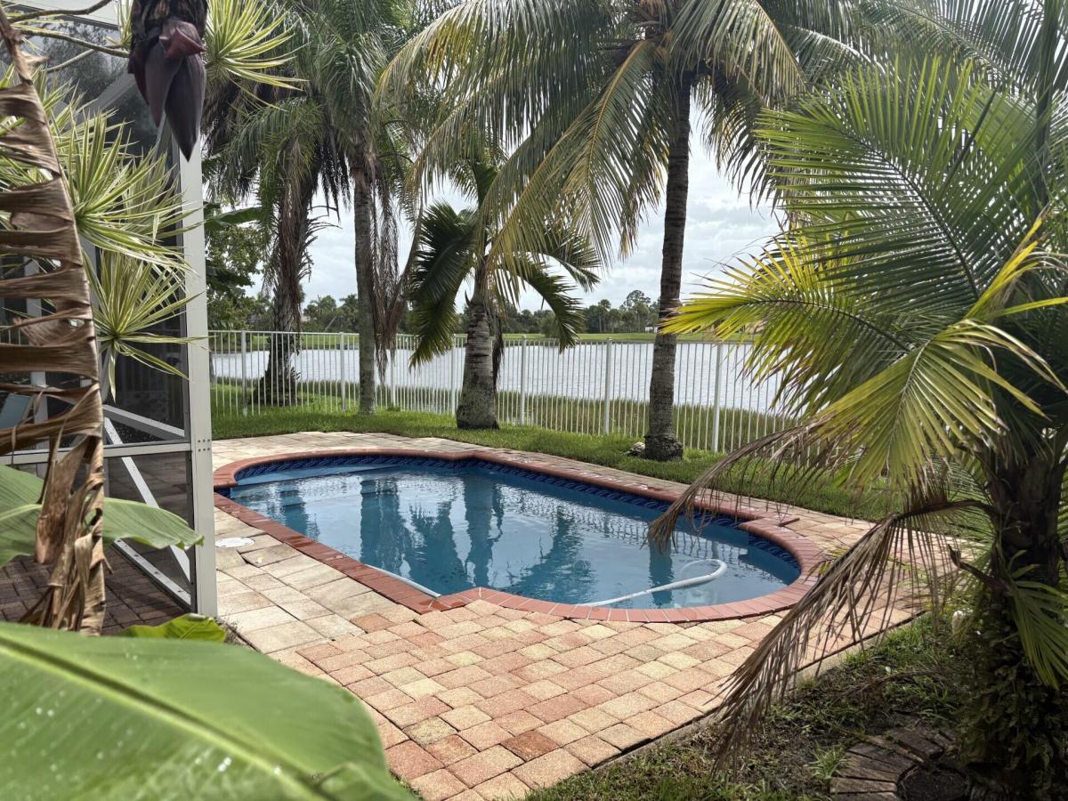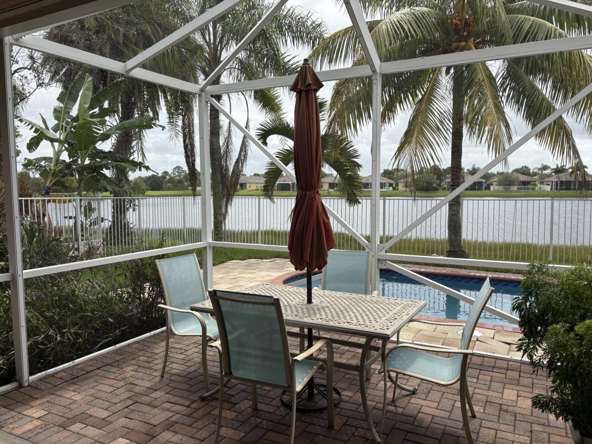 Waterfront Pool home with 2 bedrooms plus a Den/Office/3rd Bedroom. 2006 Roof. 2023 Water Heater. Large open eat-in kitchen with lots of counter space. Formal Dining area. Covered patio and screened lanai dining overlooks the inground pool. Full time Property Manager onsite.