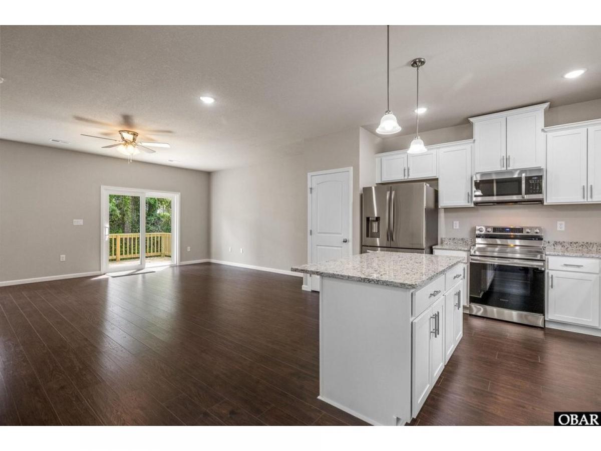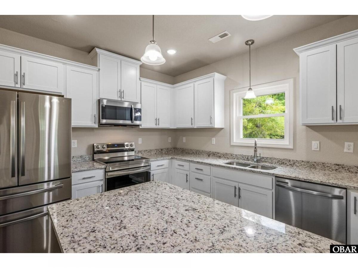 This beautiful new three bedroom home is situated on an elevated lot in a quiet neighborhood out of the flood zone and there is no flood insurance required. The home comes with a one year general builders#039; warranty by the contractor. There are nine foot ceilings throughout this home making it seem larger. There are gorgeous wood floors on the first level and the roomy great room opens onto the private sun deck through the sliding glass door. The well appointed kitchen is replete with granite countertops, new stainless steel appliances that include a refrigerator with an ice maker, range/oven, dishwasher and microwave as well as a granite top island for extra counter space or food presentation while entertaining. There is ample soft close cabinetry as well as a pantry. The convenient half bath located just off the great room is a definite plus! All three bedrooms are located upstairs and have soft carpeting for bare feet. The master bedroom is ensuite with a spacious walk-in closet. The master bath has tile flooring and a granite top double vanity. The two guest bedrooms share a bathroom which has a granite top vanity and tile flooring. Heating and cooling is provided by two zone HVAC systems. There is a spacious utility room on the ground level, perfect for miscellaneous storage and garden equipment. An outside shower is a must and is located in the carport. The exterior of the house is low maintenance handsome vinyl siding. It is just a short bike ride to the community soundfront park shaded by ancient beautiful live oaks and it has a sandy beach and boat ramp available to all Colington Harbour residents. There is also a large community pool, tennis court and clubhouse nearby that is available for an inexpensive annual membership fee. Colington Harbour is the Outer Banks#039; most sought after affordable boating neighborhood and your gateway to some of the best salt water and brackish water sport fishing on the east coast. Speckled trout, flounder, red drum, sheepshead, bluefish and stripped bass are just a few of the species of fish that inhabit the waters just outside the harbor. Whether it#039;s fishing, crabbing, sailing, kayaking, windsurfing, kite boarding, paddleboarding or just pleasure cruising Colington Harbour is the place. Live the good life. You deserve it.