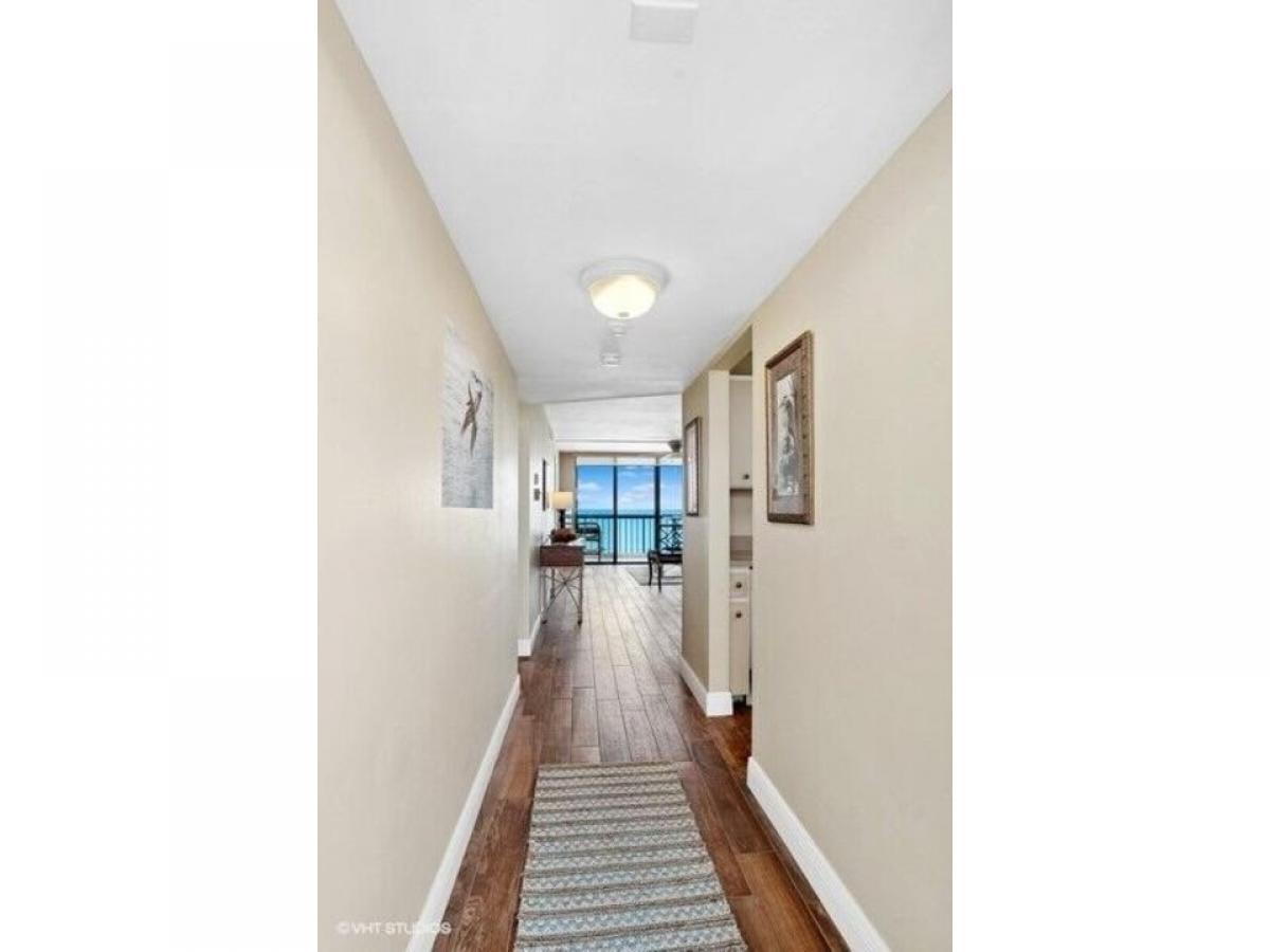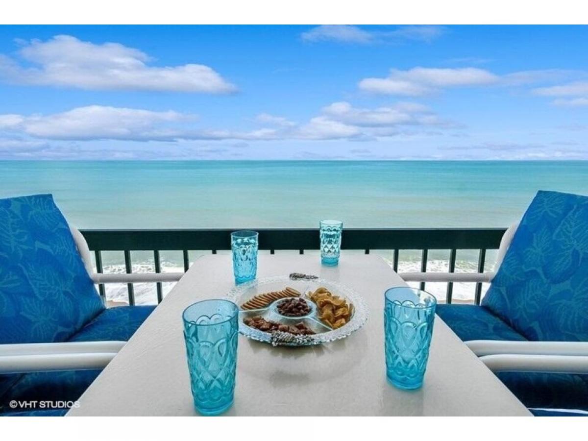 Owner/agent offers direct oceanfront condo with sunrise + sunset views. Perfect floor level for several reasons plus extensive renovations: long plank ceramic tile flooring seamless throughout (no carpet), smooth ceilings (no popcorn), higher end bathroom tiles, quartz countertops, vanities and fixtures, double sinks in master bathroom, seamless glass shower enclosures in both bathrooms, new interior doors, new wide baseboards, designer ceiling fans, new oven, new A/C 7/2023. 2 walk-in closets. Very social community with lots of amenities: 2 large pools, 2 crossover walkways to the beach (one with covered pergola), gym, several social areas, 2 pickleball courts, 2 tennis courts, beachy car wash, A/C bicycle storage + designated cage for each condo.