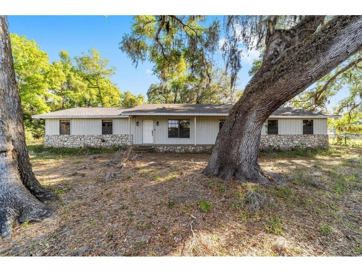 Nestled in a peaceful neighborhood just north of Ocala, this beautifully maintained 3-bedroom, 2-bath home offers privacy and tranquility on a generous 3-acre lot, zoned A1 for added versatility. Located at the back of the neighborhood, the property is surrounded by mature trees, providing a serene and private setting while still being close to all the conveniences of town. The open floor plan features a spacious living room with a cozy fireplace, perfect for relaxing or entertaining guests. The kitchen features stainless steel appliances and ample counter space. Tile flooring throughout the kitchen and living areas adds a modern touch, while the living room and bedrooms are carpeted for added comfort. The large master bedroom offers a peaceful retreat, complete with an oversized walk-in closet and a private en-suite bathroom with a walk-in shower. The guest bath features a convenient tub/shower combo. Additional highlights include a large tile laundry room, a storage shed for extra space, and a family room with its own fireplace. This home also boasts several updates, including a new HVAC system installed in 2021 and a new roof in 2023. Whether you#039;re looking for a peaceful country retreat or a family home with ample space, this property has it all, offering privacy, comfort, and convenience.