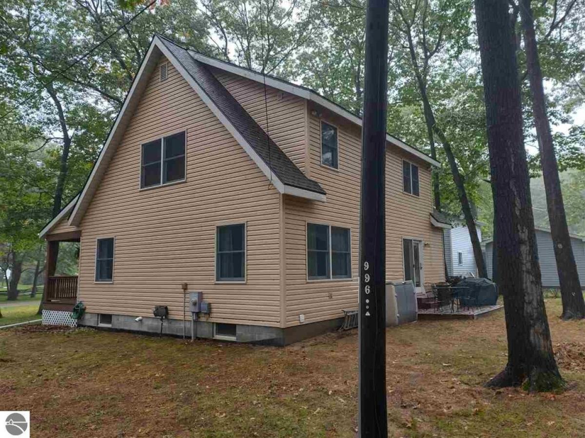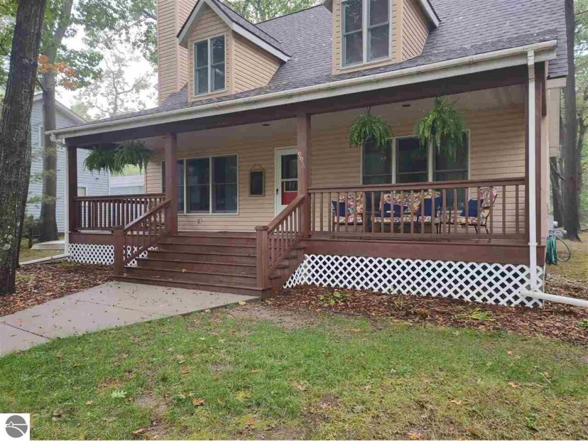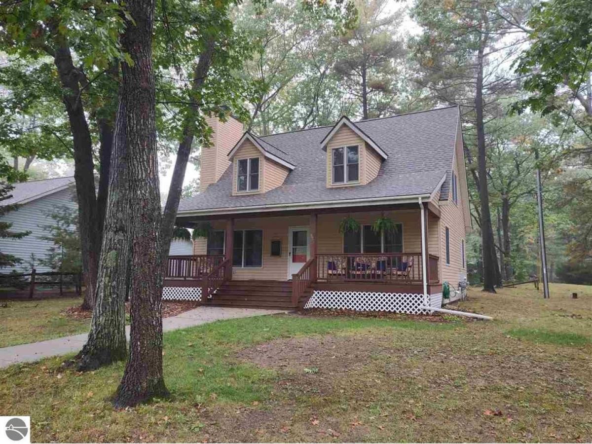 A beautiful Cape Cod style home just steps away from access to Lake Huron! This property has a welcoming entrance with the stunning and cozy large covered front porch overlooking the yard. Enjoy a spacious lower level layout with an open kitchen/dining area looking into the living room w/ vaulted ceilings and a gorgeous stone wood burning fireplace! There are two bedrooms and a bathroom on the main level and a door wall off the dining area leading out to a patio overlooking the back yard. The upper level offers a family room/office area that looks down onto the main level, a third bedroom, and another full bath w/ double sinks. For storage, there is a large full basement that also serves as the laundry and mechanical areas. Recent updates and features include a new furnace in July 2024, new flooring, new roof in September of 2021, updated interior paint, well water, natural gas, lots of kitchen cabinets, and Andersen windows. A move-in ready home that is both suited as a seasonal or year around property!