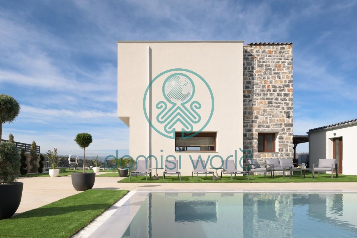 Property Code: 3-866 - House FOR SALE in Kouloukonas Agia for € 900.000 . This 225.00 sq. m. House is on the Ground floor and features 6 Bedrooms, 2 Livingrooms, 2 Kitchens, 7 bathrooms . The property also boasts tiled floor, unobstructed view, Window frames: Aluminium, Armourplated door, swimming pool, A/C, BBQ. The building was constructed in 2020 Plot area: 500 s.q. . Building Energy Rating: A+In a quiet location in Agia, near Perama and a few minutes from the seaside areas of Panormos and Bali, a single property with two fully independent residences within a private plot of 500 sq.m. is for sale, designed in a country-chic style and ready for immediate use either as a family base or as an organized tourist product in high demand.