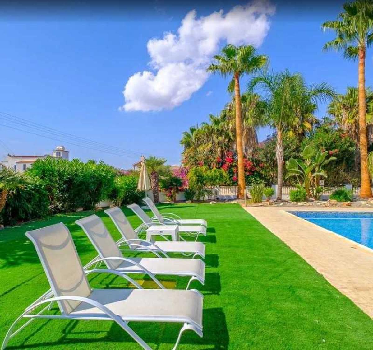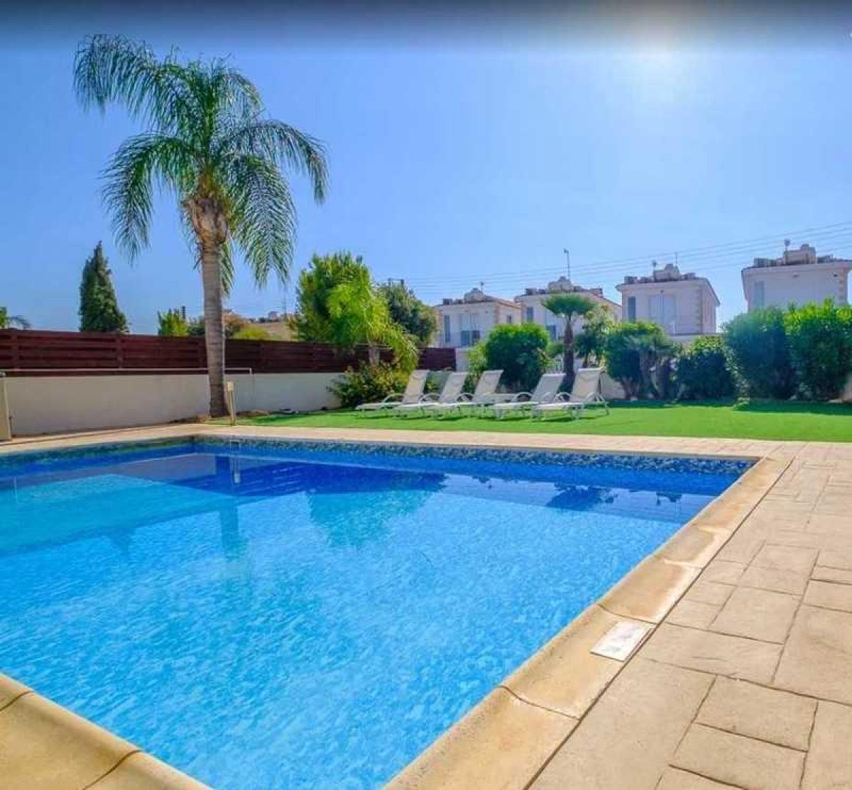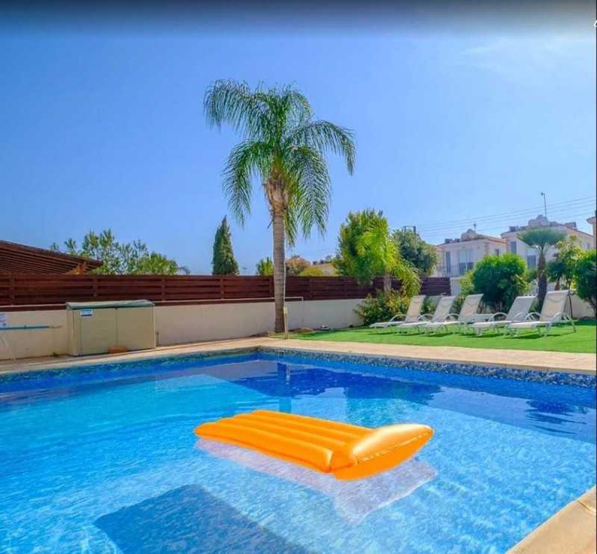 Reference ID: #SA30873Price details: €520,000A spacious villa with a private garden and swimming pool located in a quiet location close to Aya Napa Marina. The villa is within walking distance of the sea (approximately 2-3 minutes).The villa features a large private pool and a green garden. If you prefer to spend time in the shade then there is a covered terrace where you can relax.On the ground floor you will find a fully-equipped kitchen, a comfortable living space, spacious bathroom, WC and a bedroom with a garden view.The first floor has two bedrooms with balconies and outstanding sea views, a spacious bathroom with a shower, a bath and a WC.Built: 2012Refurbished: 2019Bedrooms: 3WC: 3Equipment: Ready for rents or livingAir cooling: All bedrooms and living roomPool: Private swimming poolWI-FI & TV: LCD TVs, Wi-Fi, Internet, Satelite TVBeach: Second line, 1 minute, 50 m, sea view from the terrace.Appliance:Aerial drying rackCleaning productsCoffee makerDishwasherElectric cooker & ovenElectric kettleExctractorFridge & freezerHair dryerIron & boardMicrowave ovenToasterVacuum cleanerWashing machineOther:BarbecueBed linen and towelsInfant bedInfant chairOutdoor showerParkingSunbeds and umbrellasSupermarkets: 3 kmRestaurants: 3 km TITLE DEED READYReference number: SA30873