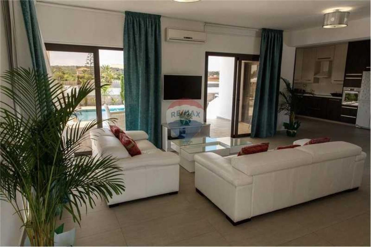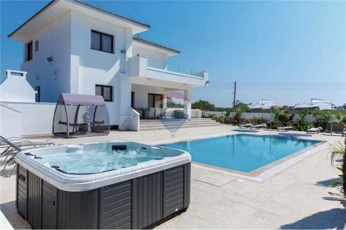 This Luxury Villa is setting new standards in luxury living.This Villa is a 4 bed roomed home from home holiday, offering huge landscaped gardens, private overflow swimming pool, Jacuzzi, Sauna, Gym and BBQ area. Located only 535 meters from the magnificent Konnos bay and the Blue Lagoon, which is one of the most beautiful beaches on the island.This villa is positioned in an exceptional residential area and only 3km from Protaras center and 5.5km from Agia Napa center, where you can find more amazing beaches and nightlife to suit couples and families alike.This Villa has brought a new dimension to Mediterranean living, focusing on privacy, indoor and outdoor living and traditionalism. The villa is built on 3 levels. The basement being the first level, which is accessible from externally and internally boasts a luxury Sauna with shower, a private Gym with modern equipment, a w.c and a Table Tennis area making this a perfect area for fun, relaxation and exercise for everyone. The ground floor of the villa has an open plan fully equipped kitchen, dining area and spacious living area with guests W.C. from this level you can access your private garden and lawn, your private swimming pool with the outdoor shower leading to the superb Jacuzzi. The spacious garden has been designed with a purpose built in BBQ cooking station, 2 large shaded areas perfect for alfresco entertaining and relaxing out the sun with comfort and style. The third floor comprises of 4 double sized bedrooms, a family bathroom and an en-suite bathroom in the master bedroom. Also a huge veranda offering spectacular views.