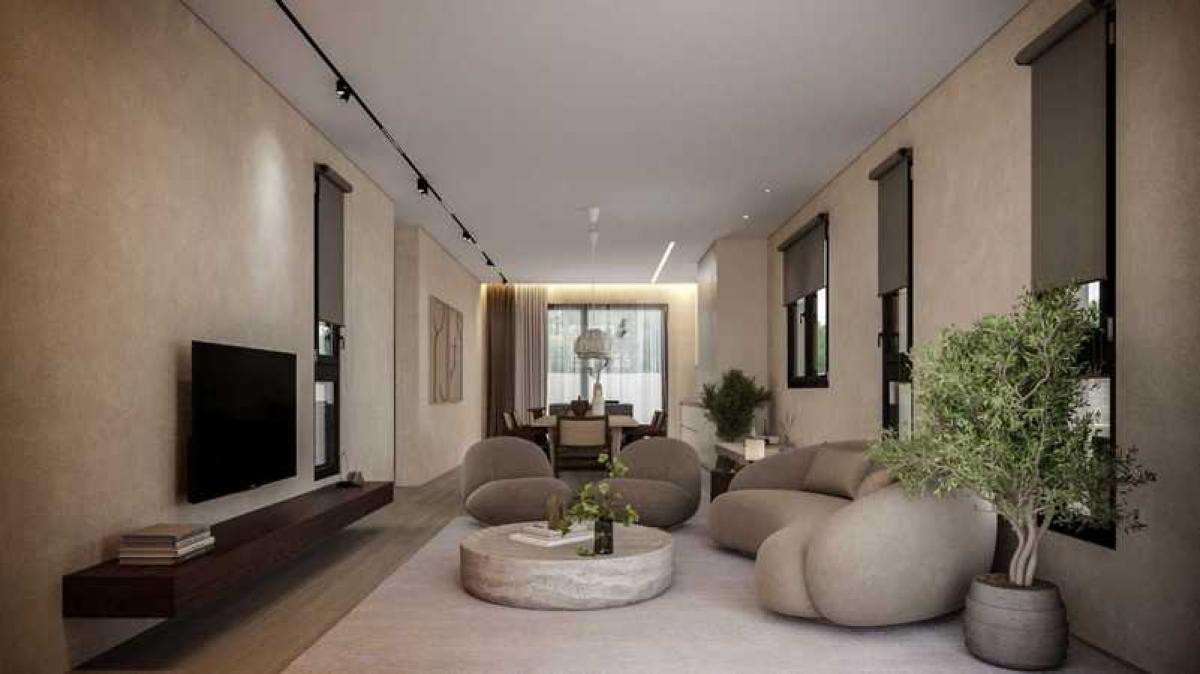 In the interiors of the residences of the Villas project, natural shades prevail, with the design highlighting the contrasts of different materials which blend harmoniously together. Each residence has an abundance of natural light but also state-of-the-art lighting systems. Designed in a way that offers its residents comfort, each residence stands out for the practicality of its spaces, which makes it ideal not only as a holiday home but also for permanent residence.