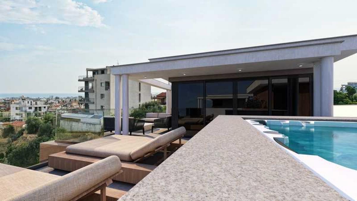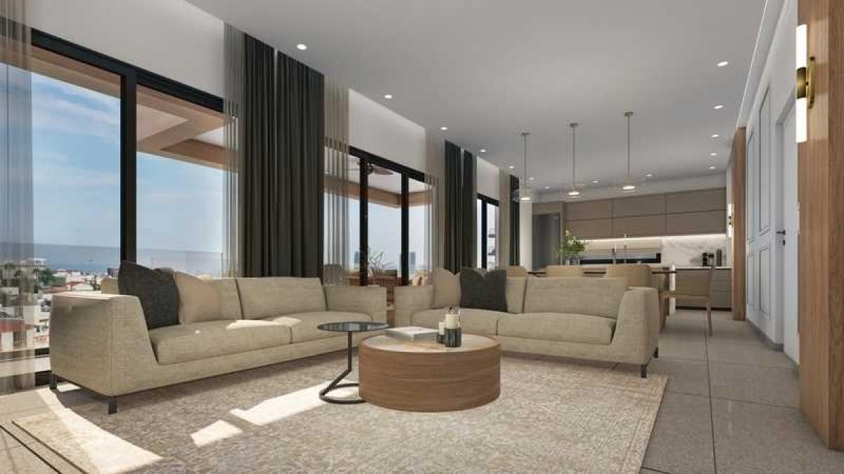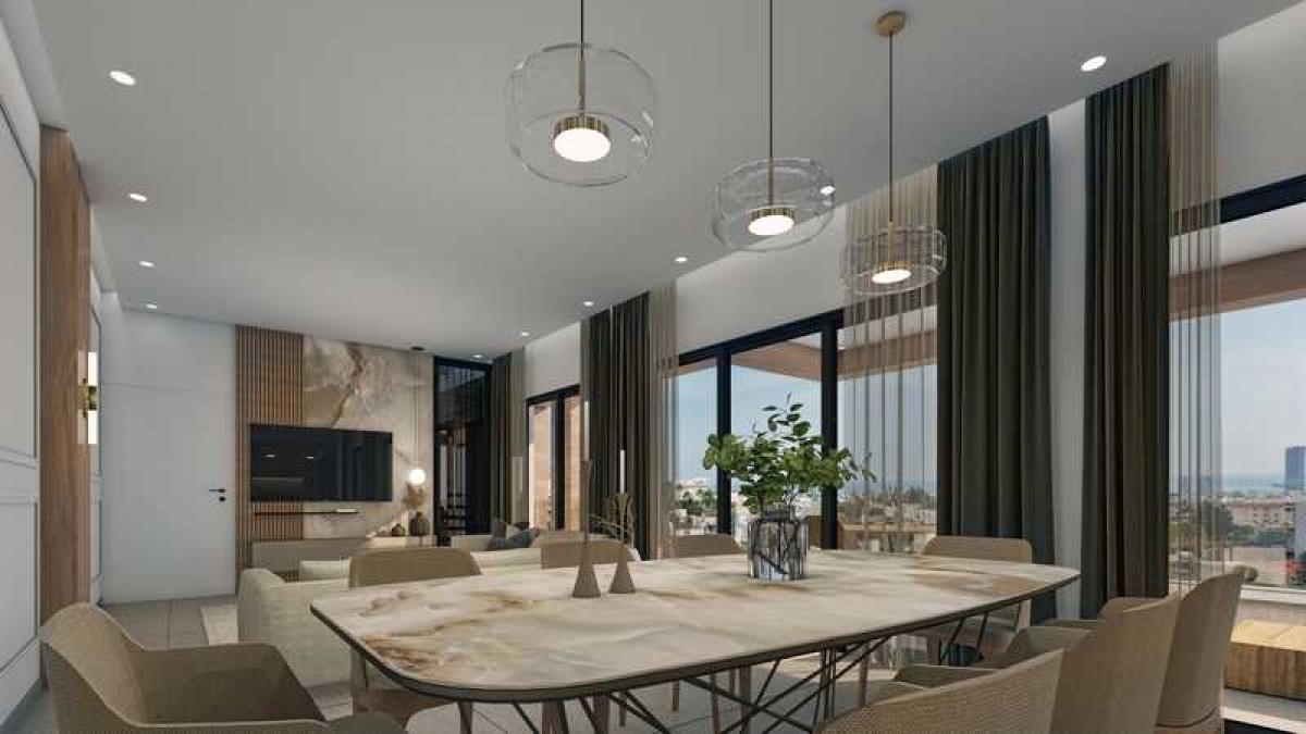 This stunning 140-square-meter penthouse offers luxurious living, blending indoor elegance with outdoor bliss. Inside, expansive glass windows frame breathtaking city skyline views, merging seamlessly into the open-plan living area filled with natural light. High ceilings and modern furnishings enhance the spacious feel. The kitchen is state-of-the-art, boasting top-tier appliances and sleek finishes.The master bedroom is a tranquil retreat with an en-suite bathroom, while additional bedrooms offer comfort for guests or family. An elegant mix of hardwood and marble floors runs throughout the space, adding warmth and sophistication.