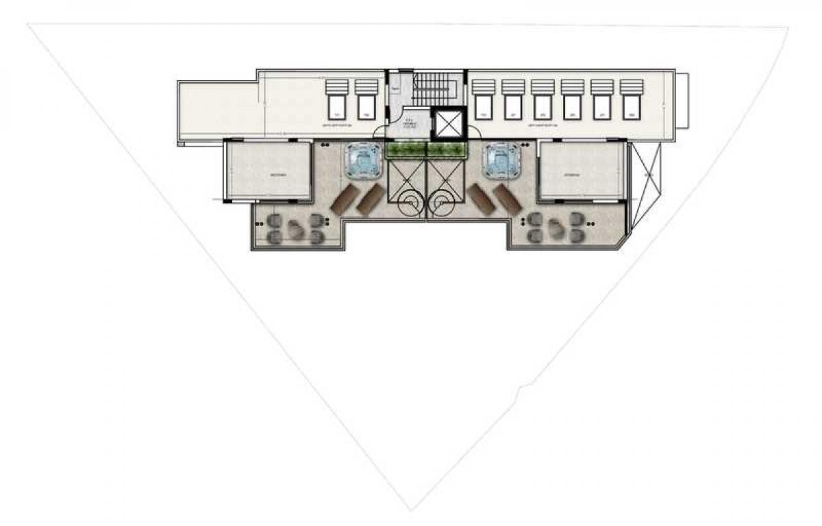Step outside to the 100-square-meter terrace, featuring a sparkling pool perfect for relaxation or entertaining. The rooftop garden is lush with greenery and provides a serene escape with seating areas for enjoying the views. The barbecue area is ideal for gatherings, enhancing the outdoor living experience.