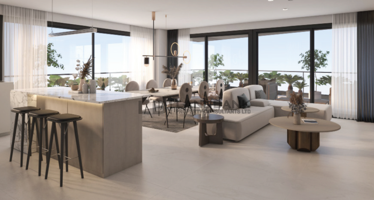 The apartment consists of an open plan kitchen with spacious dining/living room, 2 bedrooms, 2 bathrooms, air-conditions, provision for electric cars, storage room and 2 covered parking spaces.