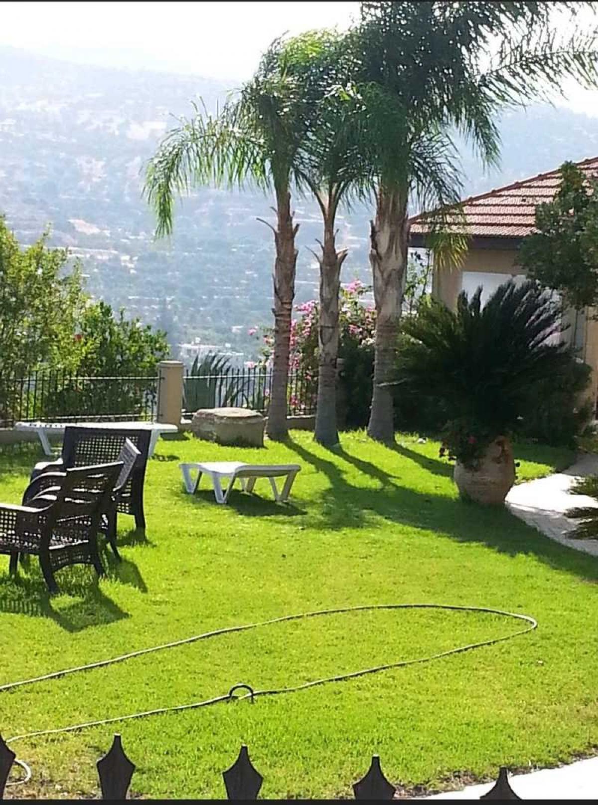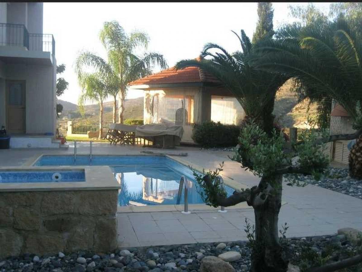 Four bedroom house at the top of the hill of Akrounta : 3 bedroom 1st floor plus Extra room lower level and Separate guest house.Very nice garden and swimming pool area and a nice kiosk overlooking Germasogia dam and the sea.