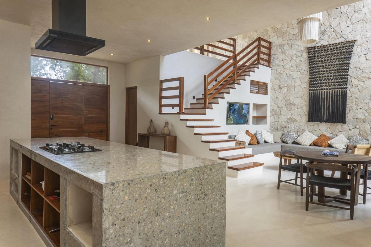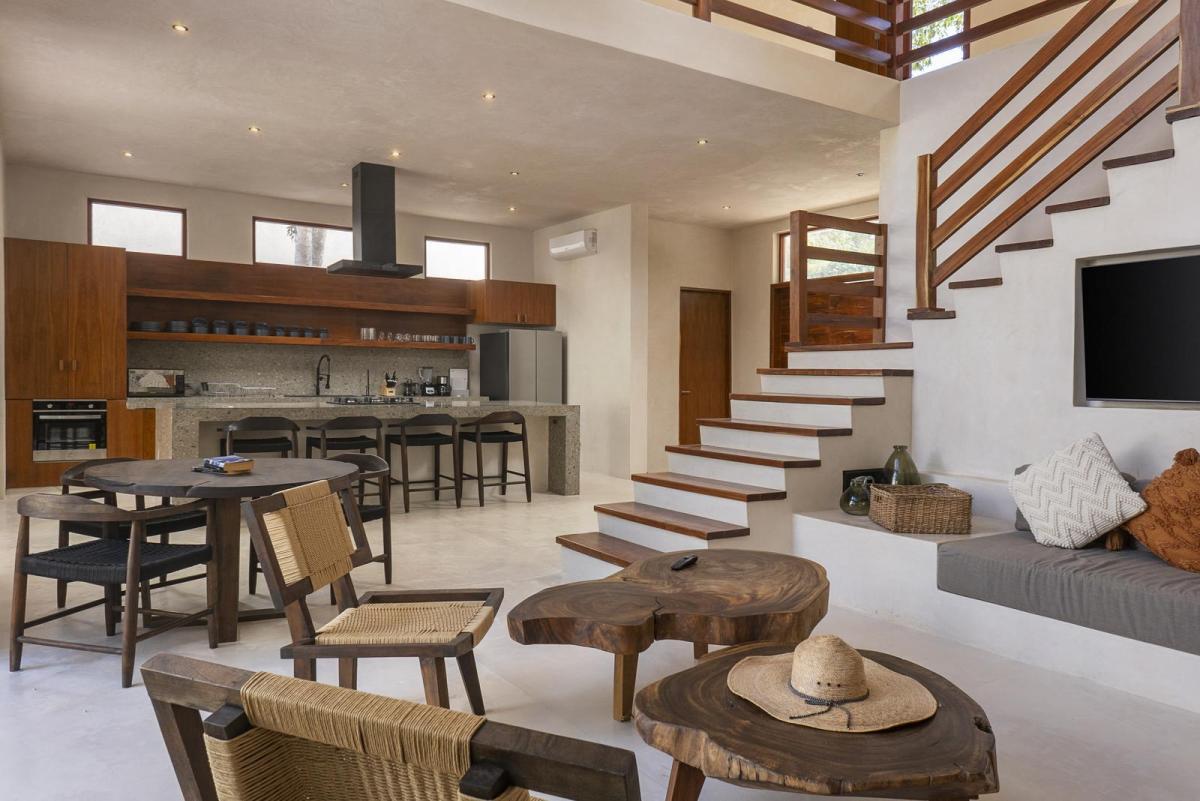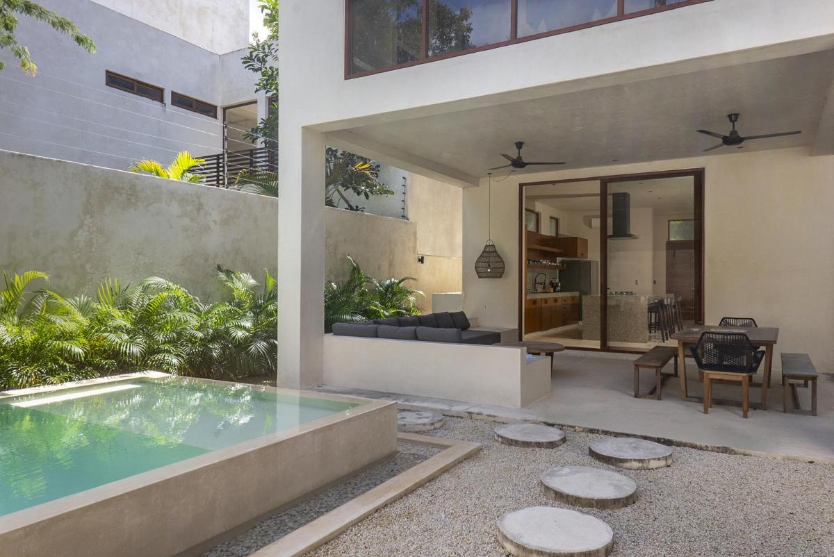Imagine an architectural masterpiece where modern sophistication meets tropical serenity in the heart of one of Tulum's most vibrant neighborhoods. This exquisite property offers 260 square meters of construction, approximately 2,800 square feet, intelligently distributed on a generous 330-square-meter lot that provides valuable space for future expansion. The residence features three spacious bedrooms and three full bathrooms plus a half-bath, providing a perfect balance of privacy and functionality for families or discerning investors. The open-concept design prioritizes flow and connection with nature, creating a sense of spaciousness and calm in every area.The heart of this home is an integrated social area that combines a fully equipped kitchen with a large dining zone, perfect for gatherings and entertainment. This space connects harmoniously with a cozy open-plan living room and a central patio that acts as the natural lung of the property, allowing optimal circulation of light and air that maintains a fresh and tranquil atmosphere year-round. The outdoor spaces have been meticulously designed for enjoyment, with a garden terrace equipped with sun loungers and the focal point of the oasis: a refreshing central swimming pool in the garden that invites relaxation and reconnection with the natural surroundings.
