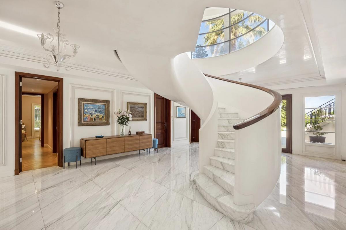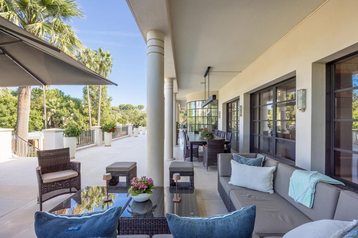 Spread over two levels, the main area of more than 600 m2 includes 4 master suites, as well as 2 guest bedrooms with a shared bathroom, and staff accommodation in the basement. A spacious 113 m2 terrace offers a breathtaking panoramic view of the Garoupe Bay.