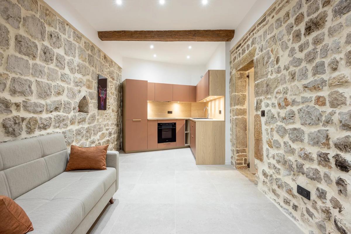 im Laufe der Jahre sorgfaltig renoviert, verbindet die immobilie traditionelle Materialien mit modernen Akzenten und schafft so einen echten Kokon im begehrtesten historischen Viertel von Antibes.