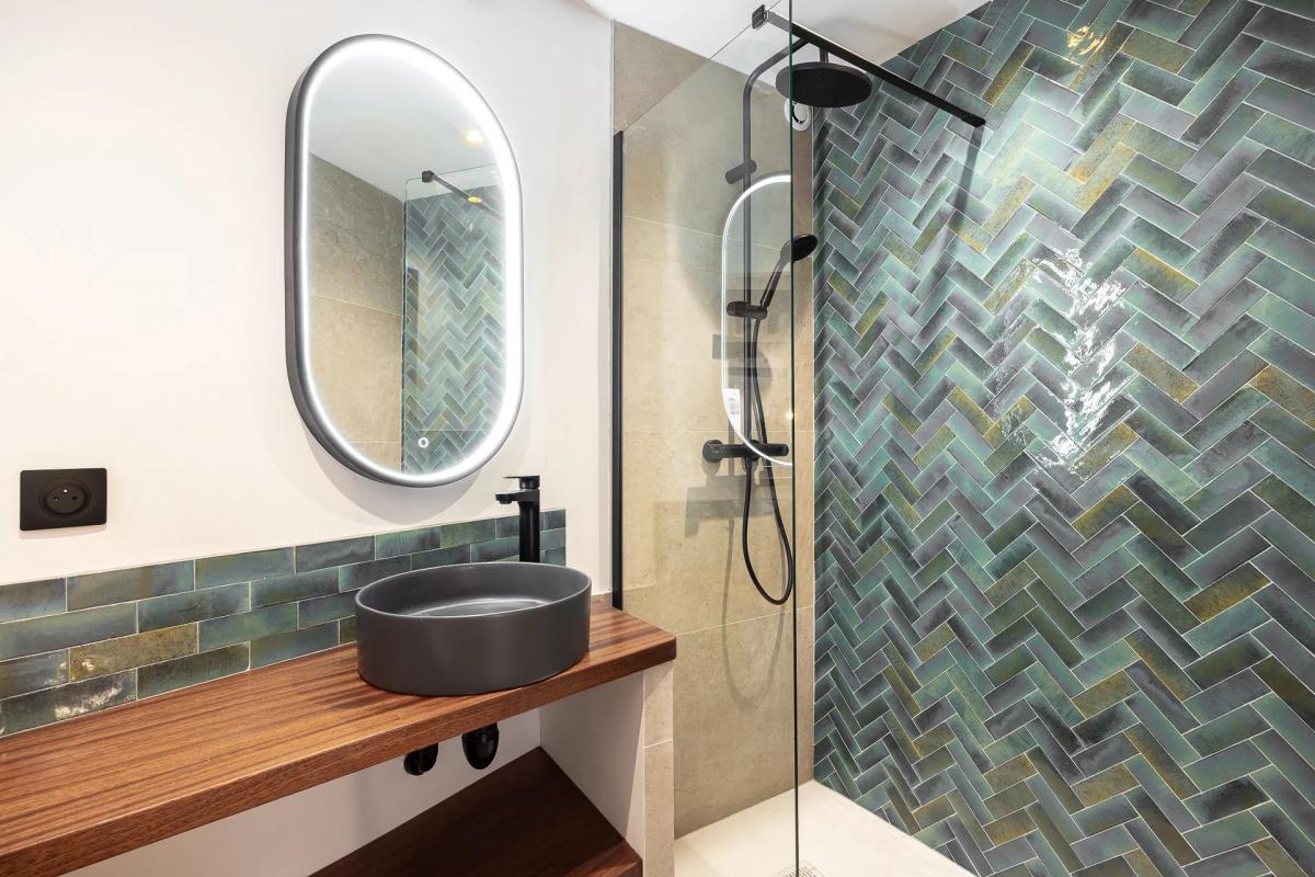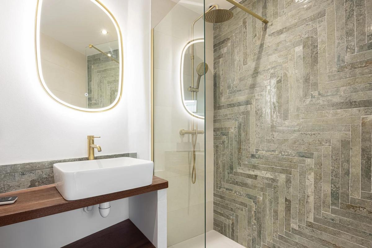 On the ground floor, a welcoming, light-filled living area offers an ideal space for hosting. A shower room with an independent entrance also allows for the creation of a small self-contained studio.
