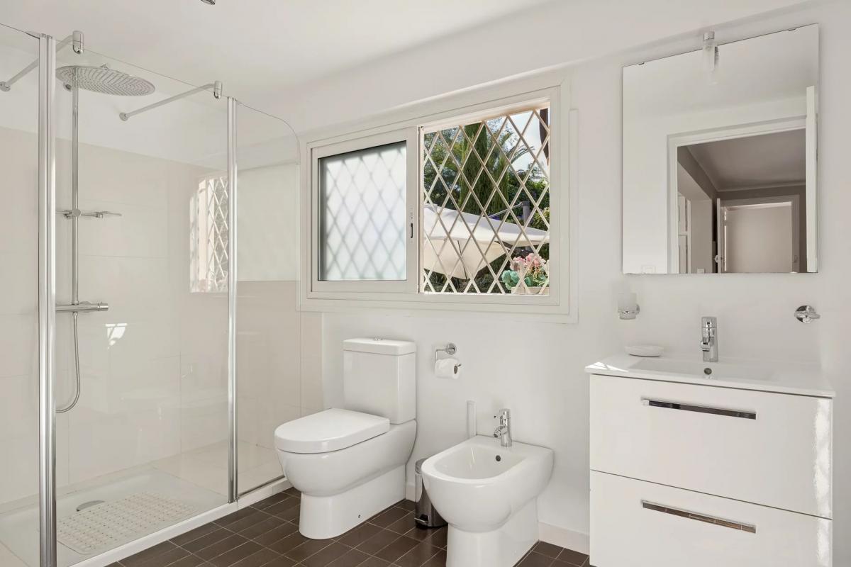 The villa offers generous volumes and exceptional brightness. The ground floor features a spacious entrance hall leading to three en-suite bedrooms, a laundry room, and a shower room with toilet, ideal after a swim. Upstairs, a large living room with fireplace opens onto a sunny terrace with a partial sea view, alongside a fully equipped kitchen and two additional bedrooms.