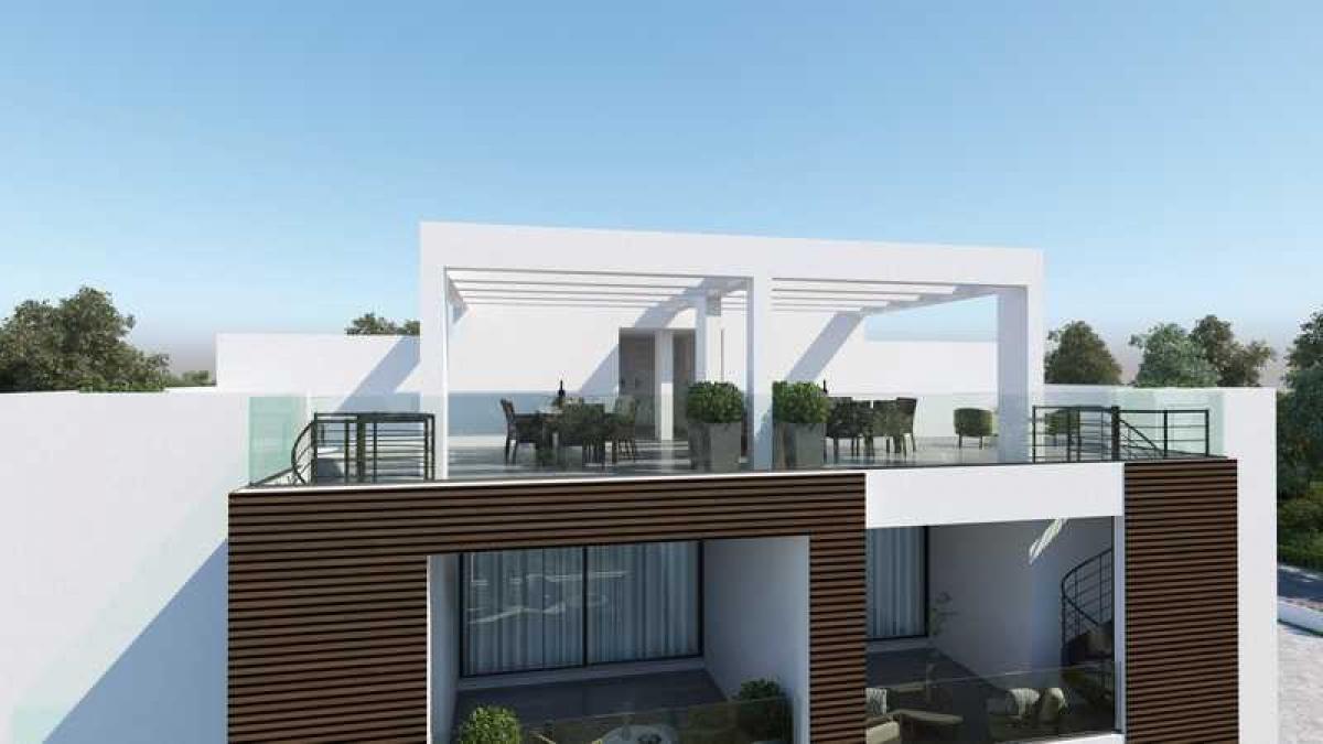 Elegant 2+2 Bedrooms Penthouse in Aradippou Larnaca. The lovely residential neighborhood is quiet and family orientated surrounded by large luxury houses and residential properties. The project is very near to schools, walking distance to Lidl Supermarket and the Metropolis Mall and with immediate access to highways to Nicosia, Limassol, Paphos and Ammoxostos. The Famous Kamares Aquaduct and Larnaca Salt Lake and Cineplex Entertainment Complex is in close proximity.The internal are of the property is 80 sq.m. The apartment consists of an open plan kitchen, living and dining area two bedrooms one of which has an en suite, one family bathroom, covered veranda of 25 sq. m., uncovered veranda of 52 sq. m., an amazing roof garden of 51 sq. m. that consists of two bedrooms and one shower, one storage room and one covered parking.