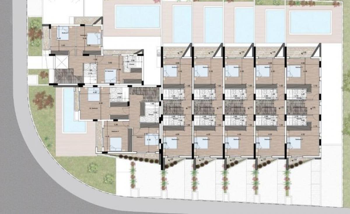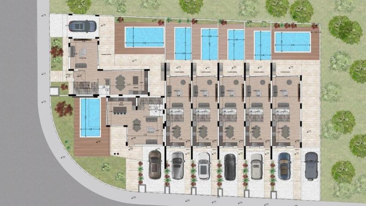 This is a new project in the upscale area of Aradippou's residential area. Close to all amenities, this project has a unique design concept featuring 3 & 4 Bedroom terraced and semi detached houses. All houses have Smart Home systems & private swimming pools. These contemporary houses are all set within a gated community.