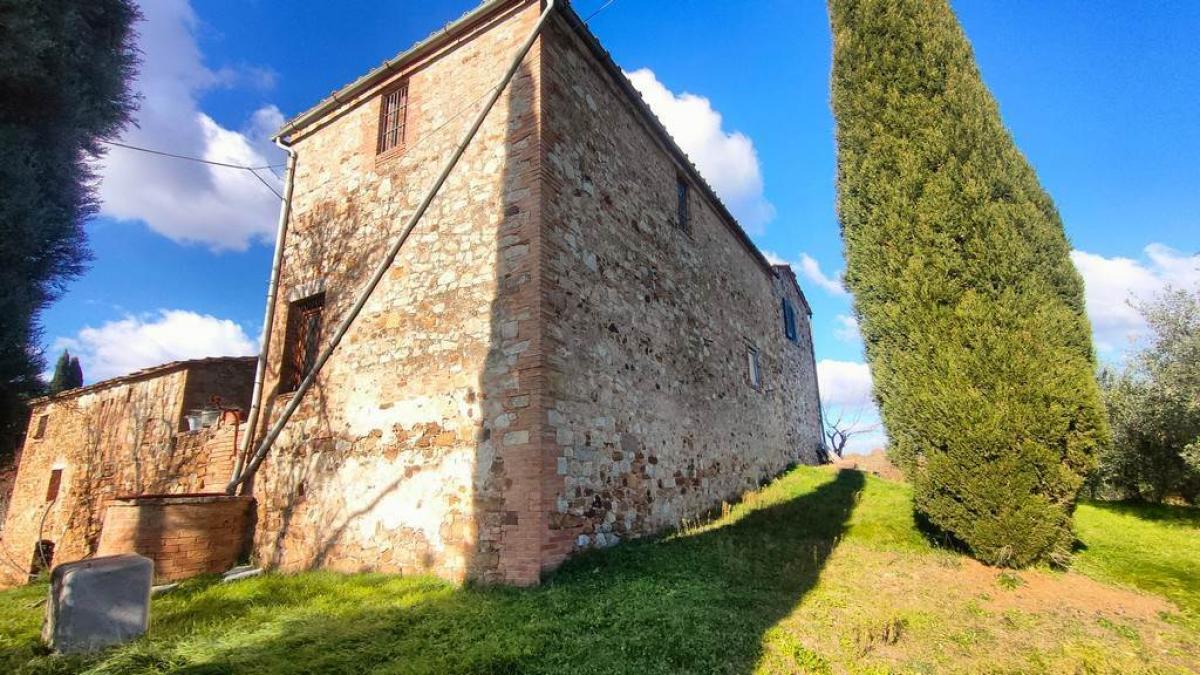 Nestled in the rolling hills of Asciano with stunning 360° views of the Crete Senesi, this charming stone farmhouse, dating back to 1890, offers a unique opportunity. Covering approximately 400 sqm, the property is surrounded by 34 hectares of land featuring arable fields, a white truffle grove managed by the Garbo Truffle Association, mixed woodland, and an olive grove with 130 mature trees, 35 years old.