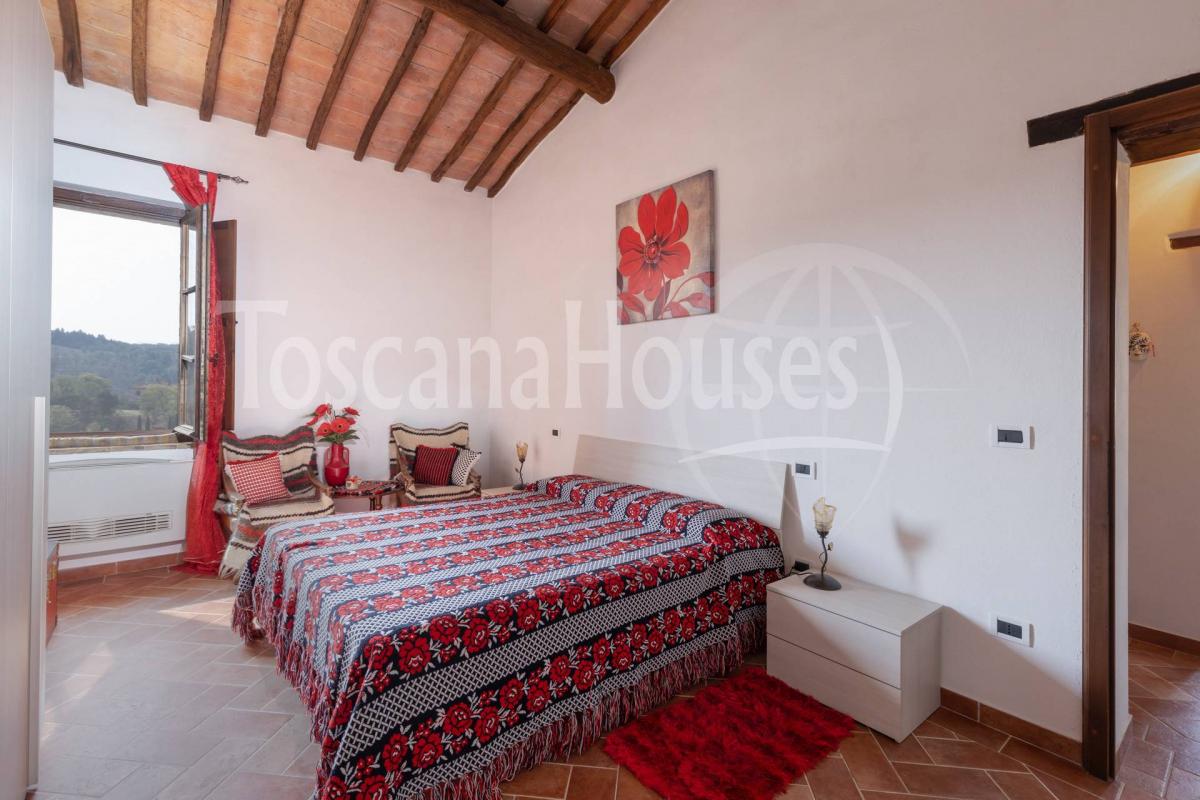 inside, the home features a traditional kitchen, a cozy living room, seven bedrooms, and five bathrooms. The interiors are adorned with authentic rustic elements, including exposed wooden beams, terracotta floors, and architectural details typical of Tuscan farmhouses.