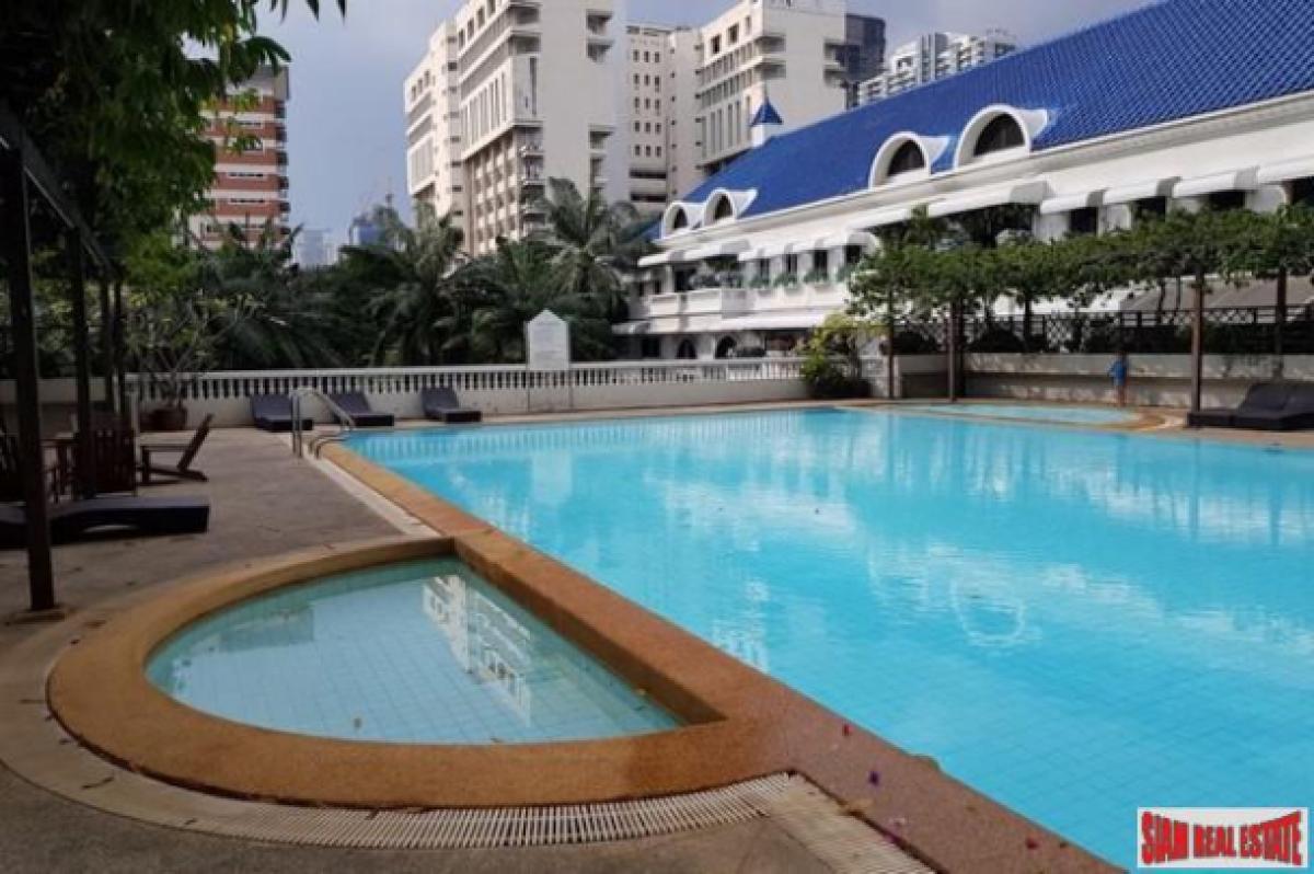 Duplex style pet friendly condo for sale in the in Asok-Phrom Phong area. This two storey unit has three bedrooms, three bathroom and two parking spaces are provided. At 189 sqm this is a spacious apartment and perfect for a family.The living room contains a sofa, coffee table, TV and there is a nice balcony with city views. The kitchen includes a stovetop, microwave, refrigerator and washing machine.