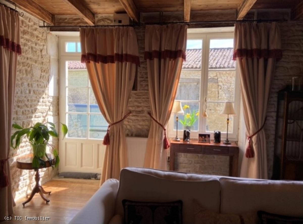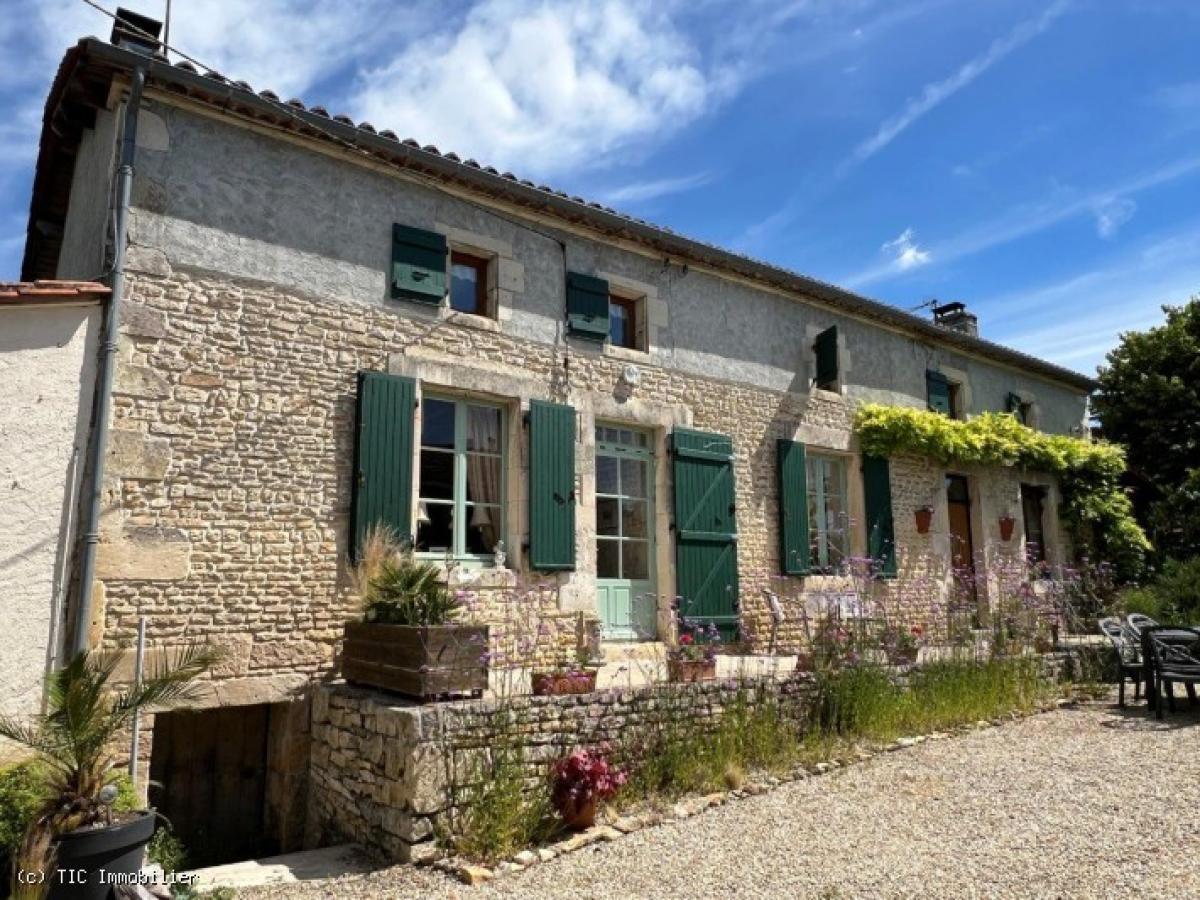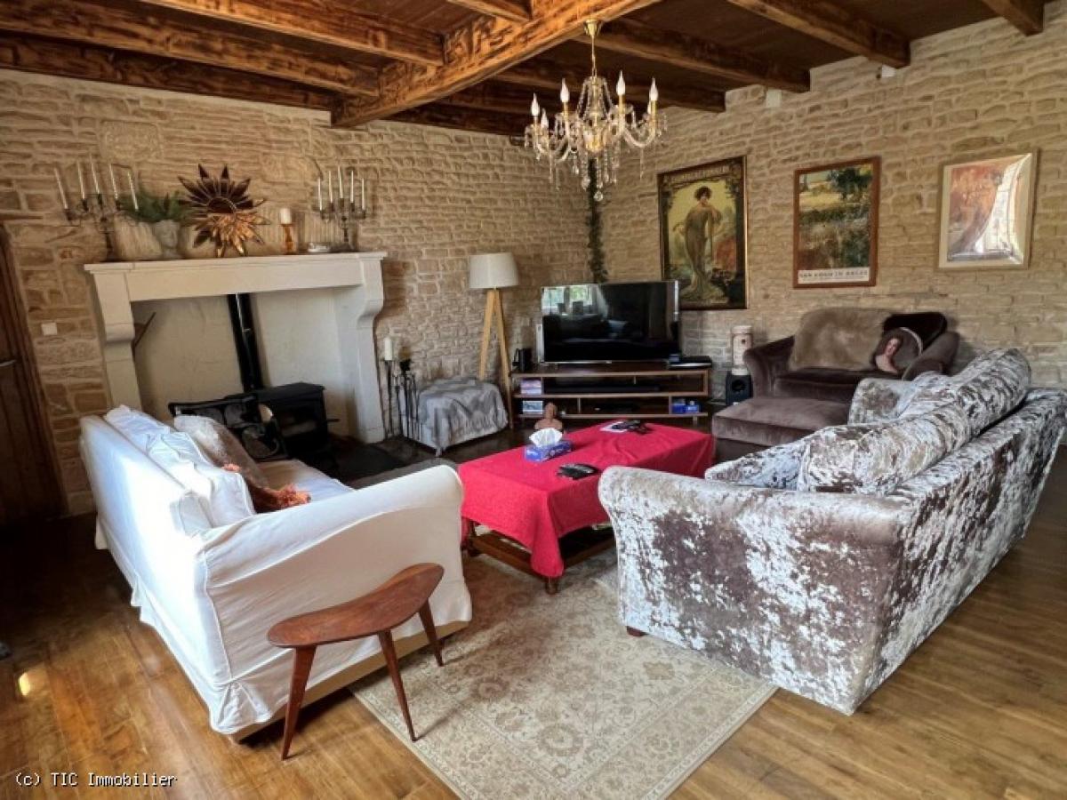 A beautiful farmhouse in immaculate order located in a small village on the edge of the river Charente. The beautifully maintained garden leads down towards the river itself and is accessed via the garden gate and across a small lane. The attractive riverside village is very quiet with no through traffic and so only locals using the small lanes. At the same time the village is under 4kms from the small town of Aunac and is also close to the larger market towns of Ruffec and Mansle. The Longere' style stone house offers spacious accommodation with 3 reception rooms, 3 bedrooms and 2 bathrooms. The property has oil central heating, is mainly double glazed and the sanitation system is conforming. Oozing character throughout such as the old oak beams, exposed stone walls, original fireplaces with efficient wood burners, but with the above modern comforts.Ground floor