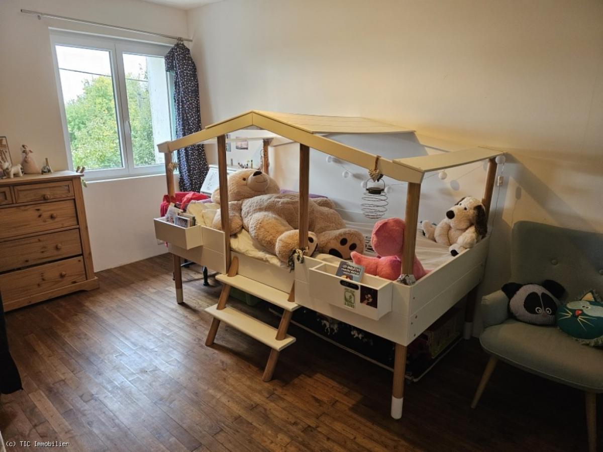 -Living room (68 m2): French windows and patio doors, fitted and equipped kitchen, wood-burning stove, rear patio doors.