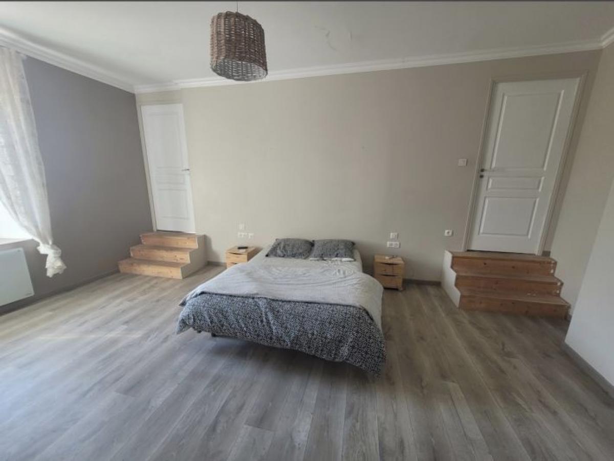 - Ground floor: Entrance into 65 m2 living room/equipped kitchen (wall and floor units, hob, electric oven, hood, dishwasher, sink) with 2 pellet stoves and access to courtyard, WC.