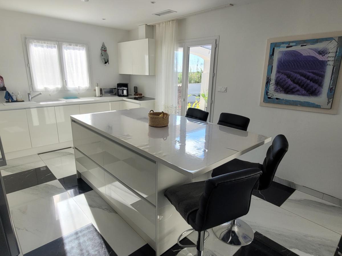 Village with all amenities, cafe/restaurant, grocery store, bakery, : 20 minutes from Beziers, 25 minutes from the beaches and 10 minutes from the Orb river.Recent and spacious villa, built in 2019 in a traditional style, on one level, ideally located in a quiet residential area at the bottom of the village. It offers 123 m2 of living space, including 3 bedrooms, on 801 m2 of landscaped grounds with a swimming pool. This property benefits from all modern comforts, charming outdoor space and beautiful views of the surrounding countryside, making it a pleasant and peaceful place to live.
