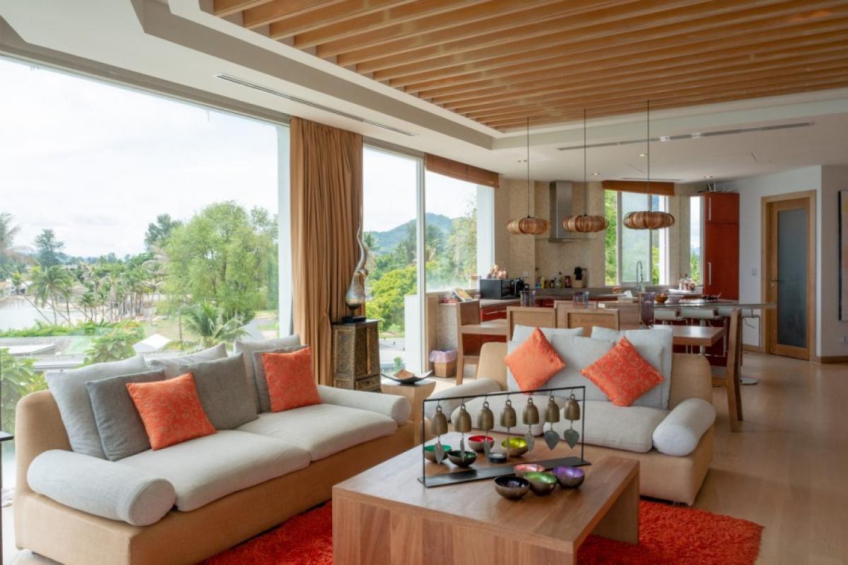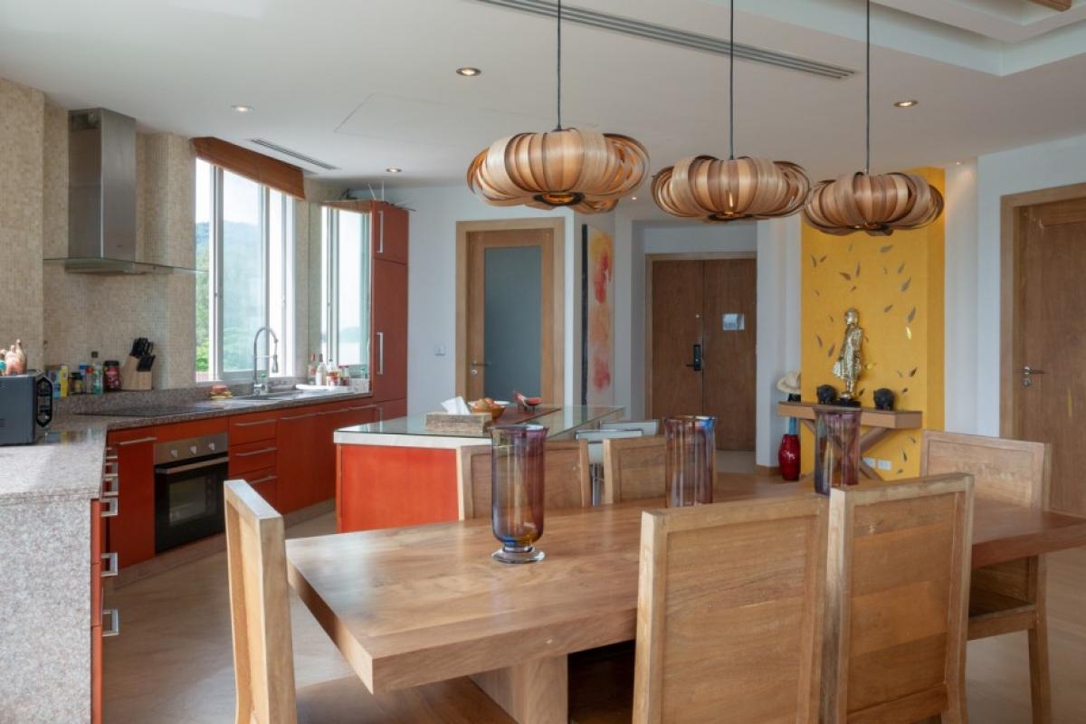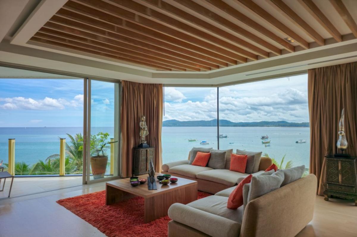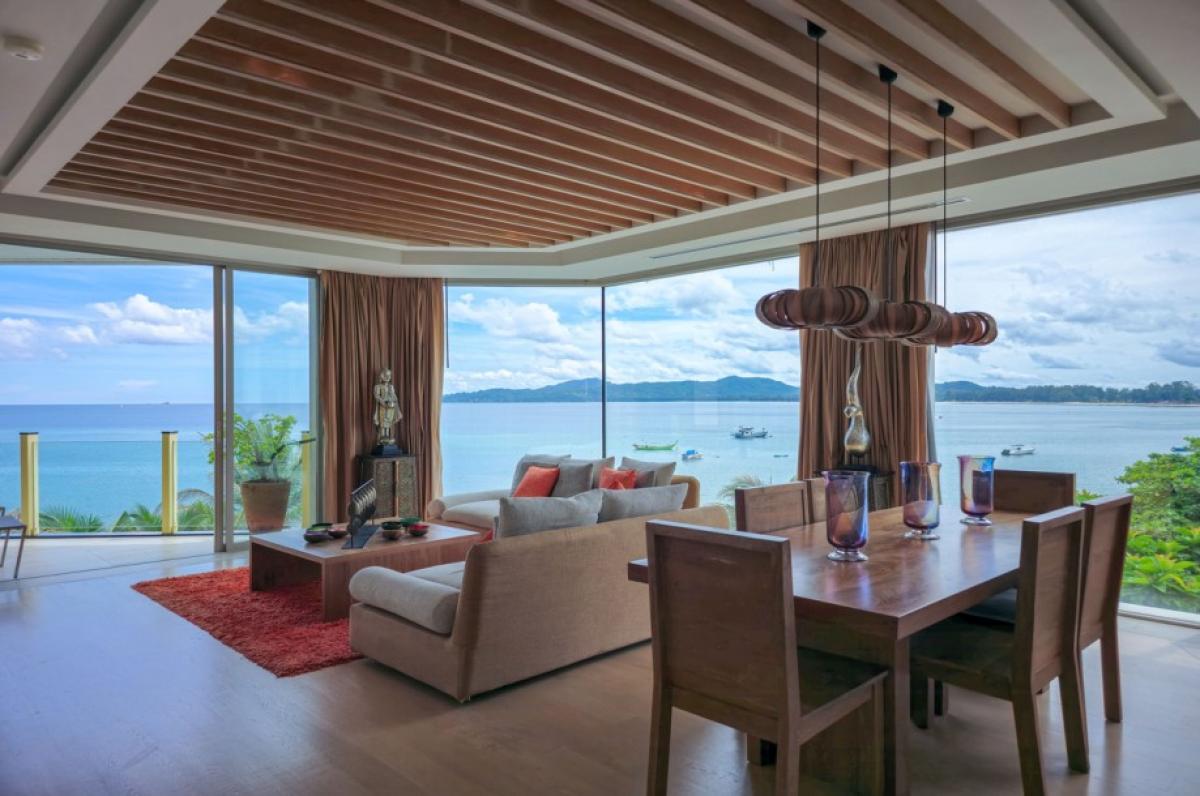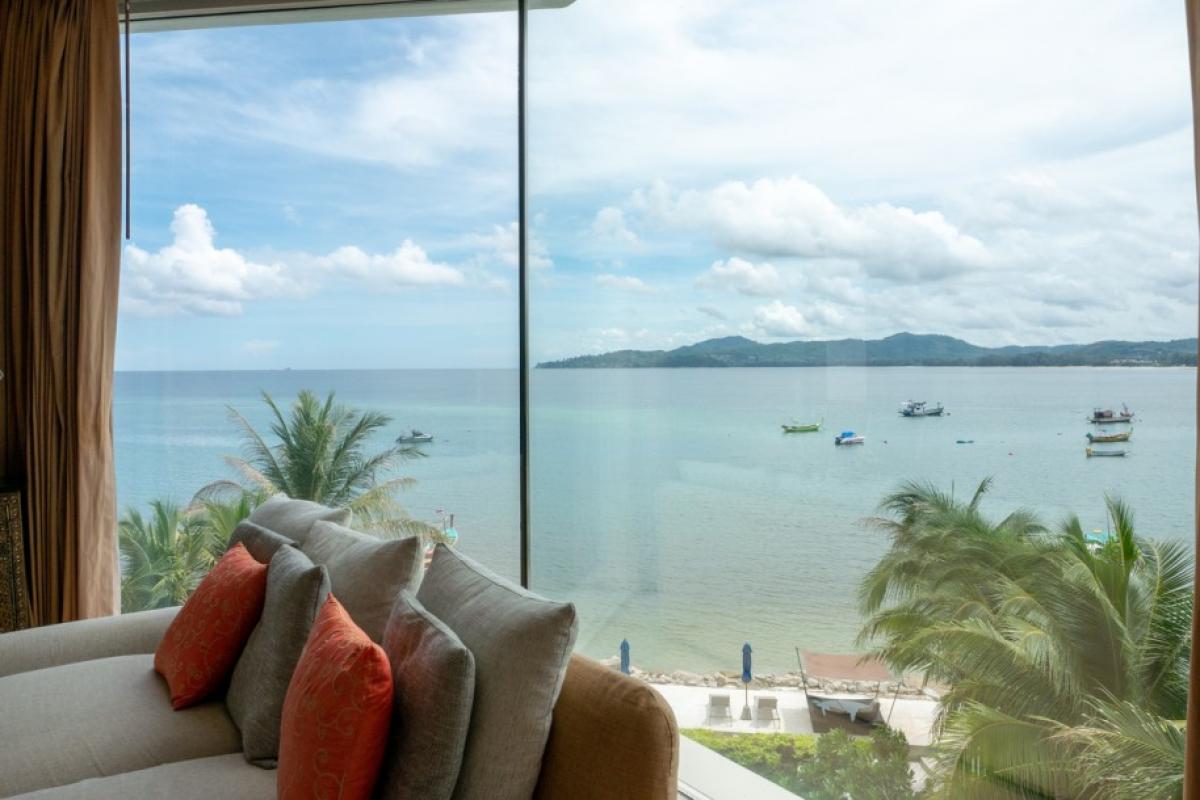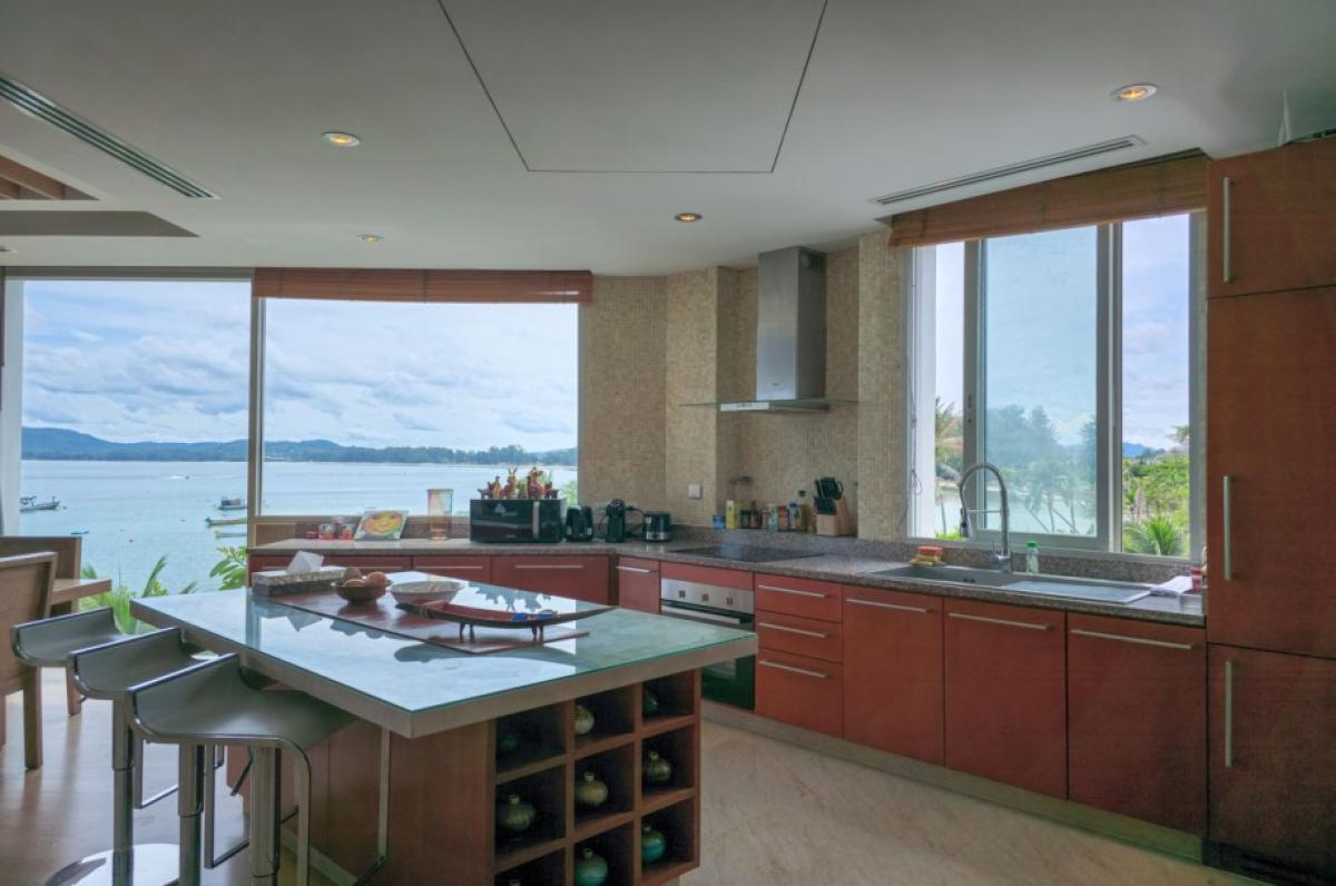Experience the luxury of living in this luxurious beachfront penthouse. Boasting breathtaking panoramic sea views of Bang Tao Beach, this penthouse offers an unparalleled coastal lifestyle.The 147 sqm interior is thoughtfully designed to maximize space and comfort. Two spacious bedrooms and two well-appointed bathrooms cater to residents and guests alike. Floor-to-ceiling windows bathe the apartment with a lot of natural light, creating an airy and inviting ambiance. The modern Western kitchen is a chef's dream, featuring ample counter space, a full-sized oven, and an electric stovetop. A separate pantry/laundry room adds convenience to daily living.