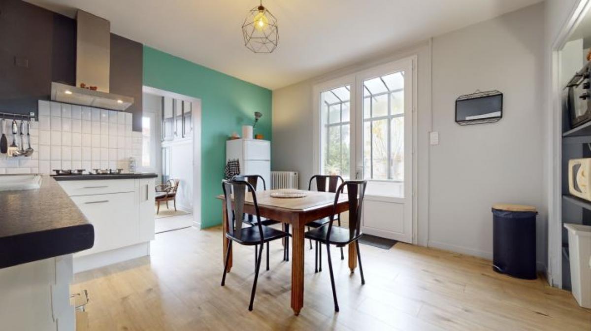 REDUCED in price - Charming house from the 1950s, bathed in light and ideally located in a residential area, a few steps from all amenities. This house of approximately 109 m2 offers beautiful living spaces, including two bright living rooms, three comfortable bedrooms, an equipped kitchen, an office, WC, a bathroom and a cellar / laundry room in the basement.Nestled in an enclosed garden with trees, it also has a garage.