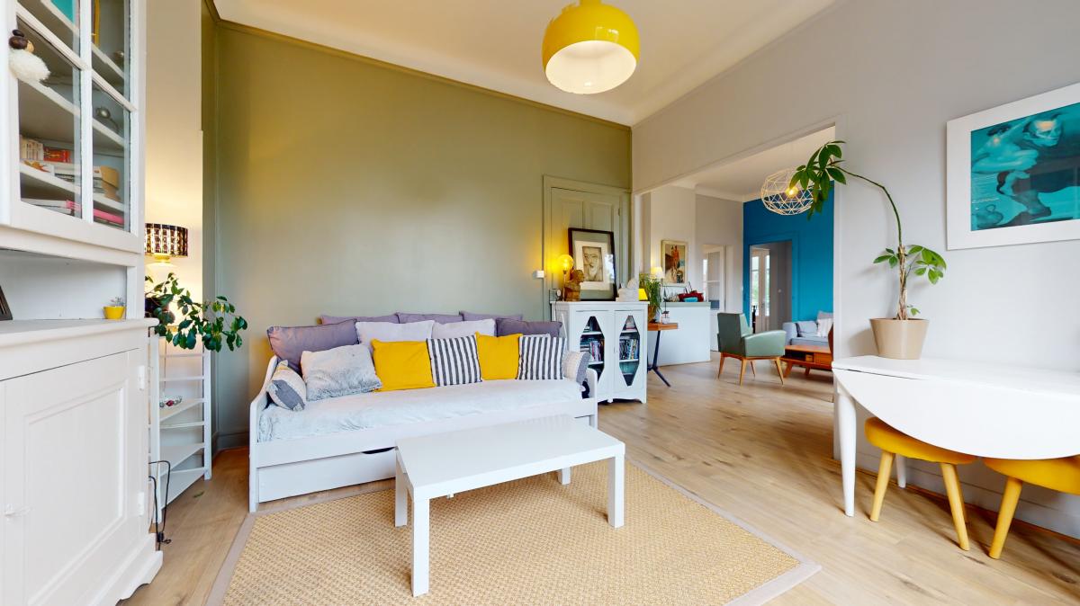 Charming house from the 50s, bathed in light and ideally located in a residential area, a few steps from all amenities! This house of approximately 109 m2 offers beautiful living spaces, including two bright living rooms, three comfortable bedrooms, an equipped kitchen, an office, WC, a bathroom and a cellar/laundry room in the basement. Nestled in an enclosed garden with trees, it also has a garage.