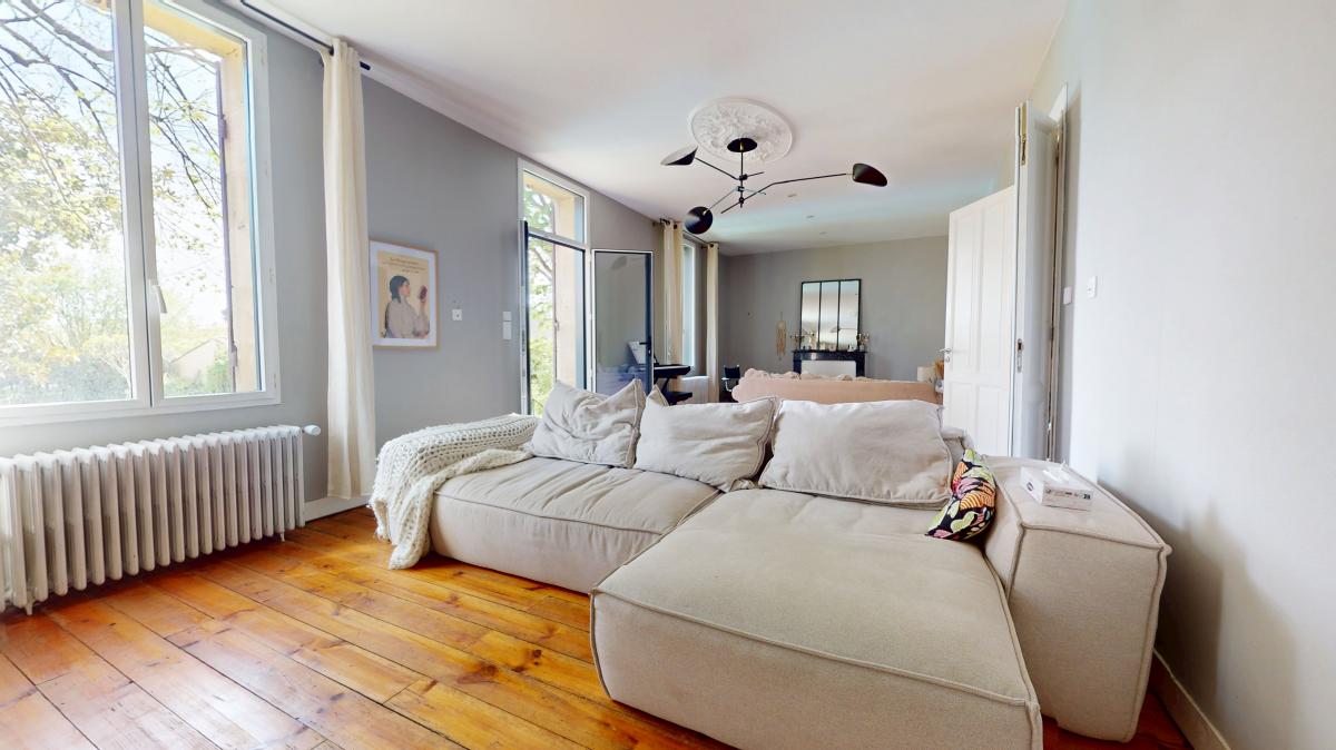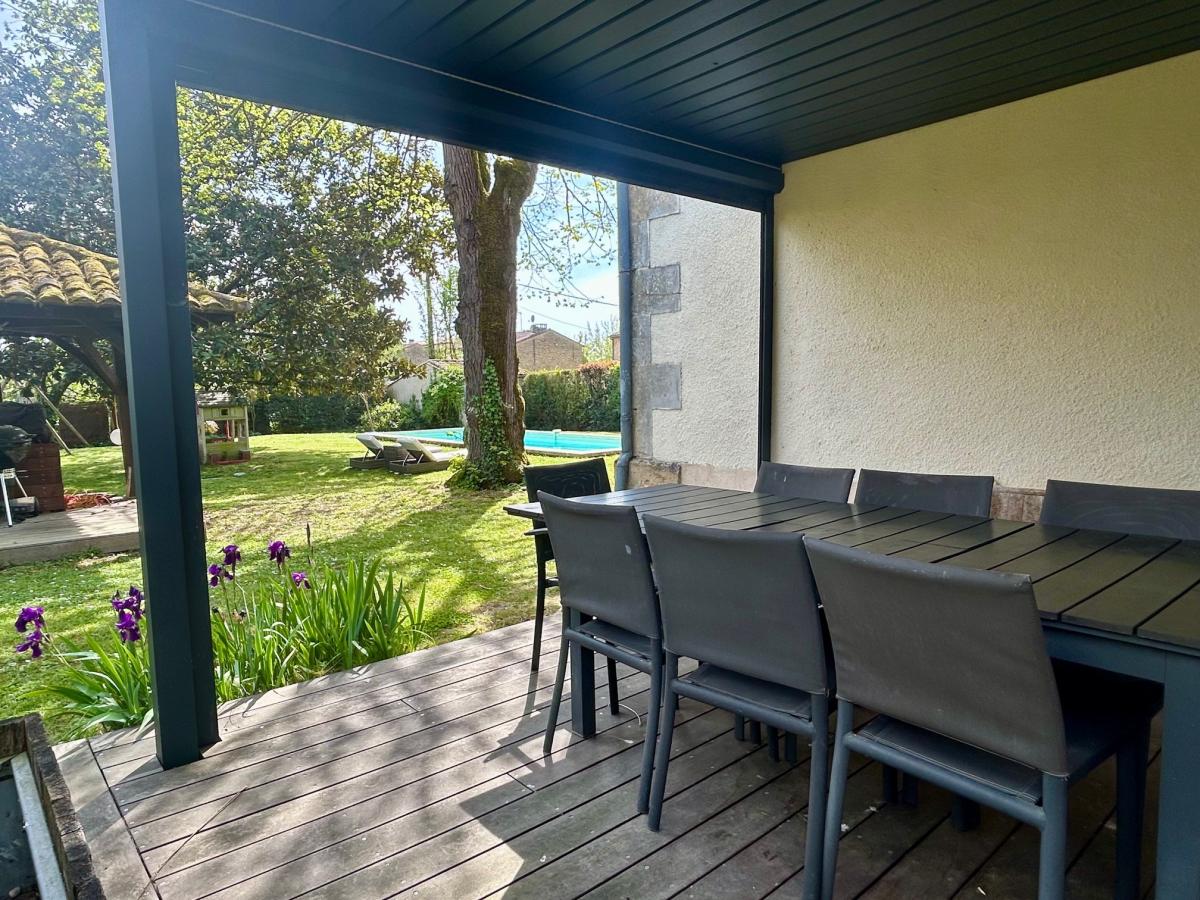 Superb bourgeois house within walking distance of Bergerac town center. Approximately 215m2 of living space with old-fashioned charm, parquet floors, rosettes, fireplaces, and modern comforts, double glazing, mains drainage, modern bathrooms and kitchen. it has 4 bedrooms including a master suite with dressing room, 3 bathrooms, a fitted kitchen opening onto a covered terrace (bioclimatic), dining room, office, laundry room, and large, bright living room of approximately 40m2. Enclosed and mature garden, with heated swimming pool, double garage, cellar, and well. A rare property on the Bergerac market, to visit without delay.