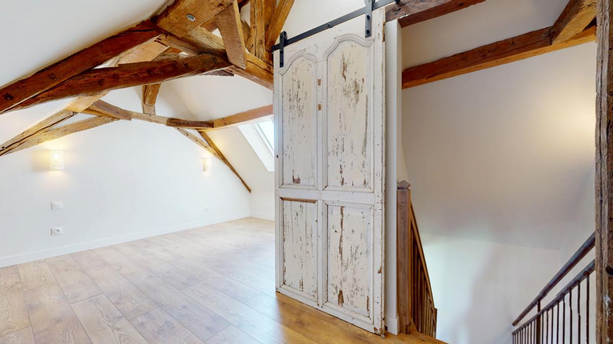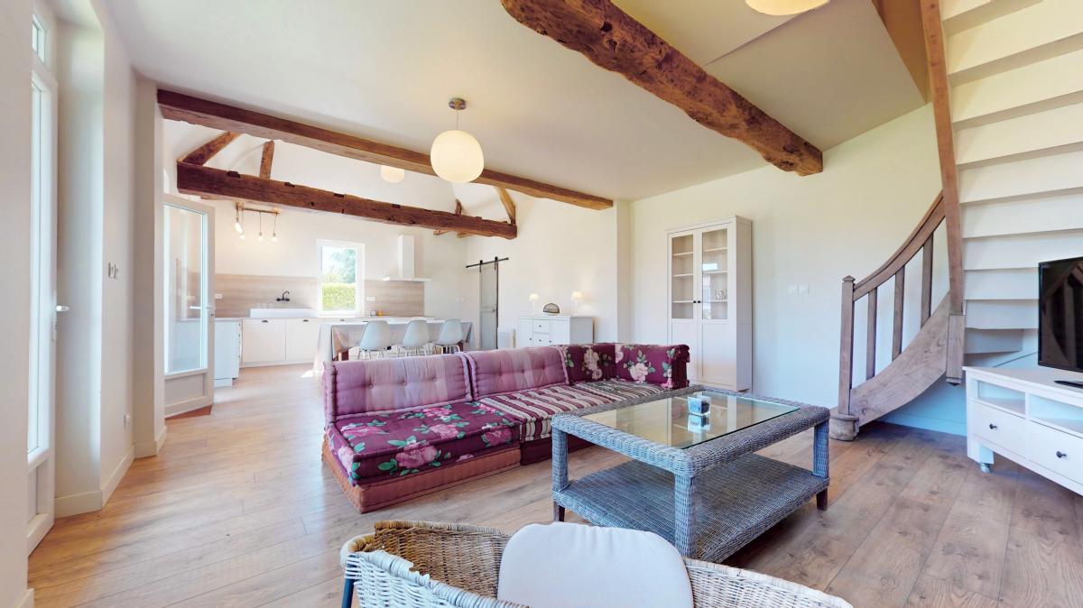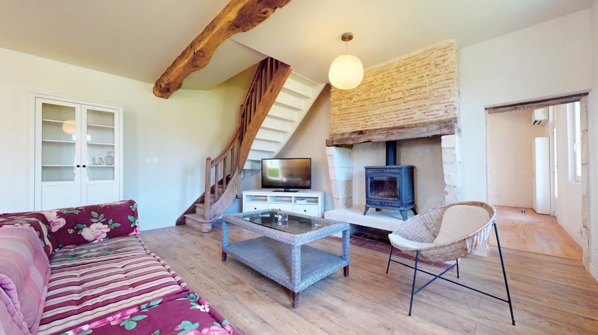 House with three bedrooms on one level and an office upstairs in Bergerac, close to shops, schools, middle schools and high schools, on a 1000m2 garden in a quiet residential area. For old stone lovers, between rustic and minimalism, this renovated farmhouse offers 155m2 of living space: beautiful 48m2 living room with open kitchen and wood burner, second 25m2 living room with wood burner, 3 bedrooms, one with en suite shower room/WC, and two with private toilet, one bathroom / WC, a laundry room, an office on the first floor and an attached garage, all in the middle of a 1000m2 enclosed garden with electric gates. Fiber, mains drainage. A must see!