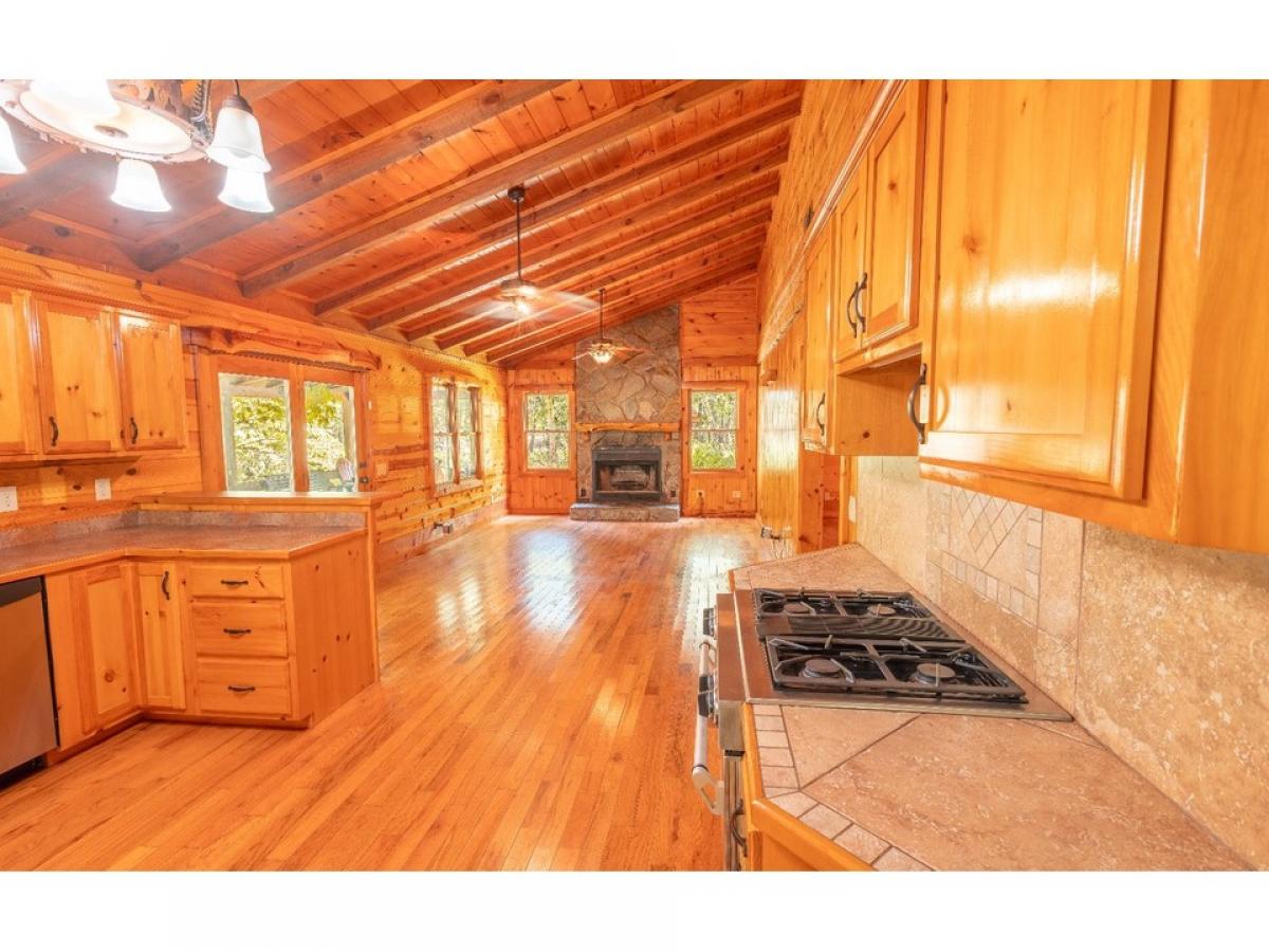Cozy & Comfortable Creekfront Charmer is tucked away on private & level wooded tract just minutes from historic downtown area and perched on the banks where rushing Fightingtown & Madola creeks meetGa truly unique propertyG2 bedroom/2 bath rustic cabin boasts easy one level living is situated just a Gstones throwG from the water with a spacious layout, rustic wood interior, stainless appliances in roomy kitchen, granite counters, bright & open living/kitchen/dining areas overlook the gentle large acre at end of road tract, house on large lot + 3 addt'l lots included, soothing stone fireplace in great room, rocking chair covered porches, relaxing view of the mountains & water, party pavilion with outdoor kitchen is perfect for entertaining, guest cottage or studioG.endless potentialGgreat full time home or that much needed getaway, perfect investment/vacation rental potential and more...mostly paved roads and easy access in scenic, rustic community just minutes from historic downtown Blue Ridge and McCaysville!