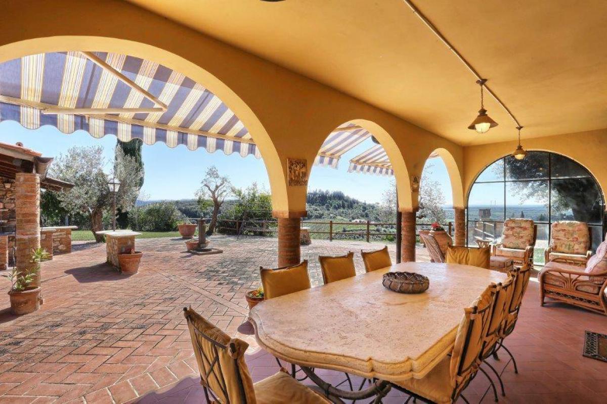 The property is surrounded by a Mediterranean garden of 1 hectare, filled with cypress trees, pines, and olive groves. A large gravel courtyard leads to the house, and the outdoor living areas are designed to enjoy the surrounding nature. The large covered terraces, perfect for dining al fresco, offer views over the Tuscan countryside, and there is a barbecue area with a stone oven. The garden has several areas for relaxation, and the panoramic view of the surrounding hills and the sea makes it the perfect place for enjoying the sunsets. The property is equipped with a spacious parking area and is easily accessible via a well-maintained country road.