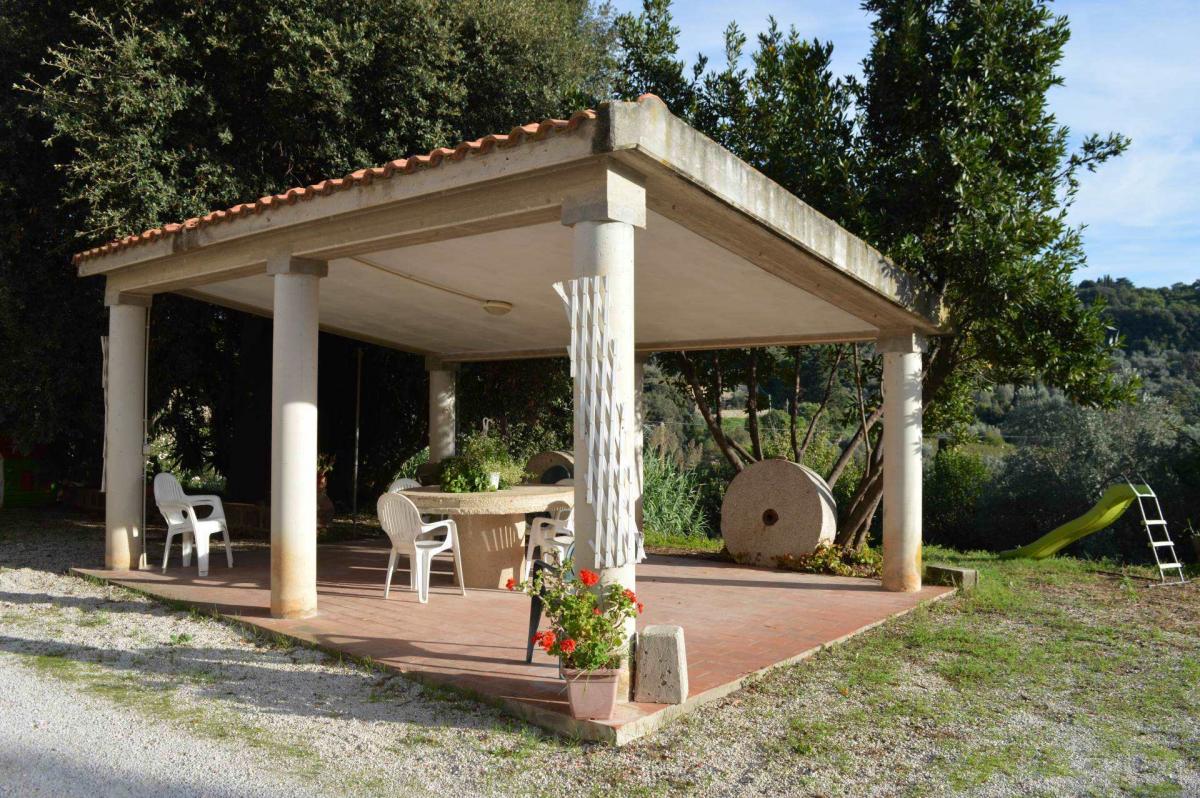The estate includes 2.5 hectares of productive olive groves with around 300 trees, plus a small natural woodland area. Additional outbuildings include an independent agricultural warehouse and a canopy for equipment storage.