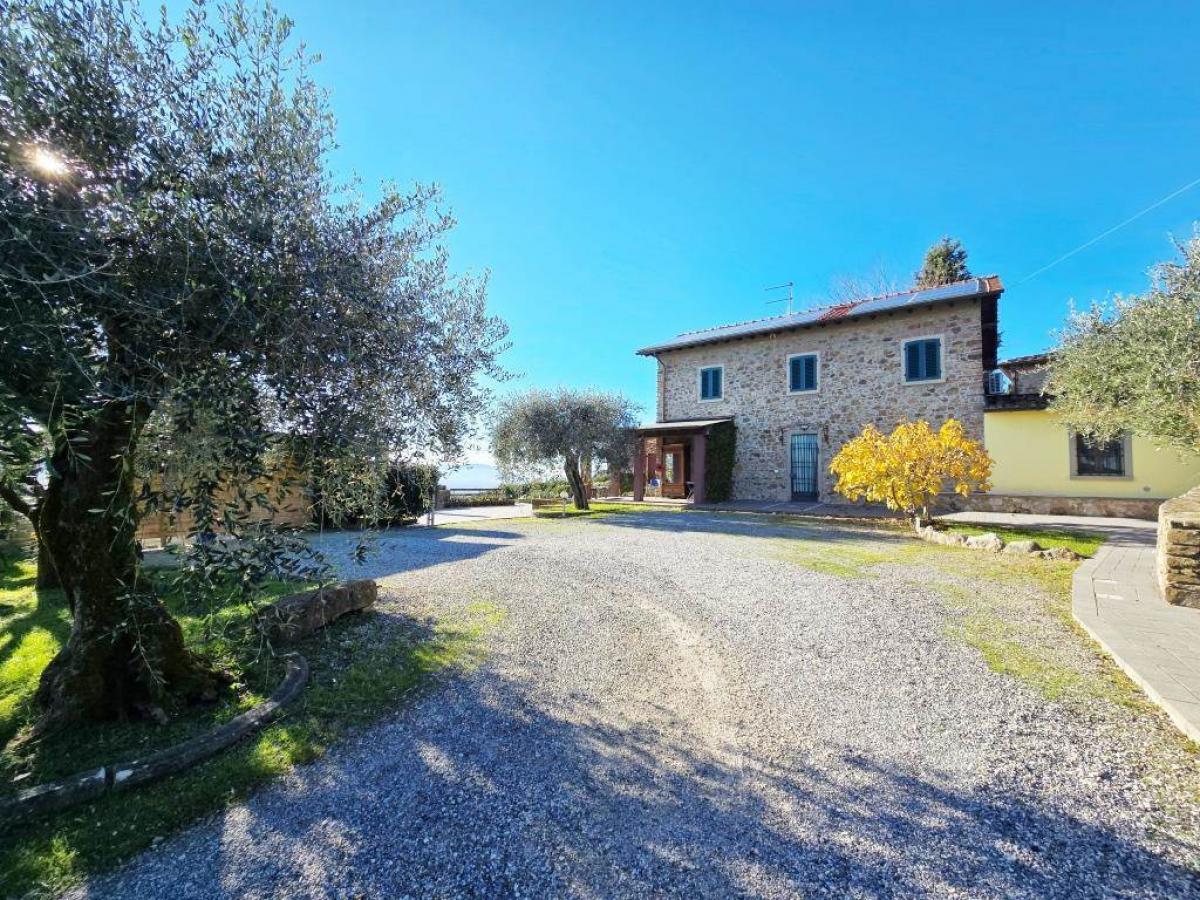 The property, a stone farmhouse renovated in the 1990s, covers about 220 sqm and consists of two separate apartments with independent entrances. The apartments can easily be restored into a single large residence by removing a drywall partition, providing a flexible living space.