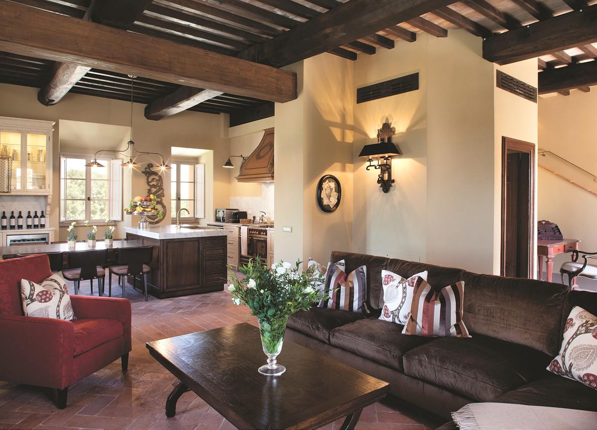 With its superb terrace and dining area overlooking overlooking the countryside and the hilltop town of Casole d'Elsa, the penthouse apartment it is the 'crowning jewel' of the estate.