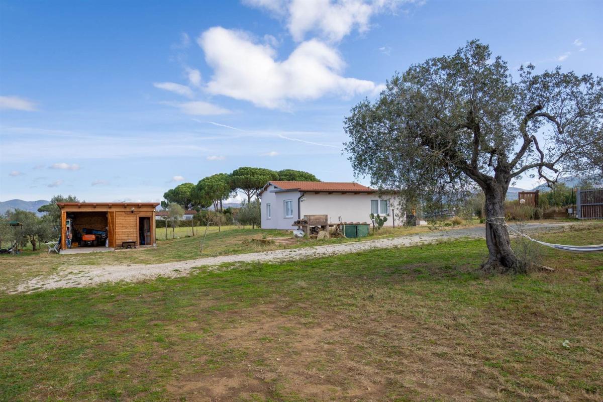 The property also includes a 20 sqm garage, perfect as a tool shed, storage space or technical room—an important asset for managing the land. The approx. 8,000 sqm agricultural plot is fully fenced and well maintained, featuring over 150 producing olive trees and several fruit trees, making it ideal for a small agricultural project, high-quality self-consumption, or a rural investment. Accessibility is excellent thanks to double driveway entrances plus a pedestrian gate, while the irrigation system, potable water supply and artesian well make the property highly functional and versatile. The setting is classic Tuscan countryside just minutes from the sea: peace, greenery, and multiple potential uses.