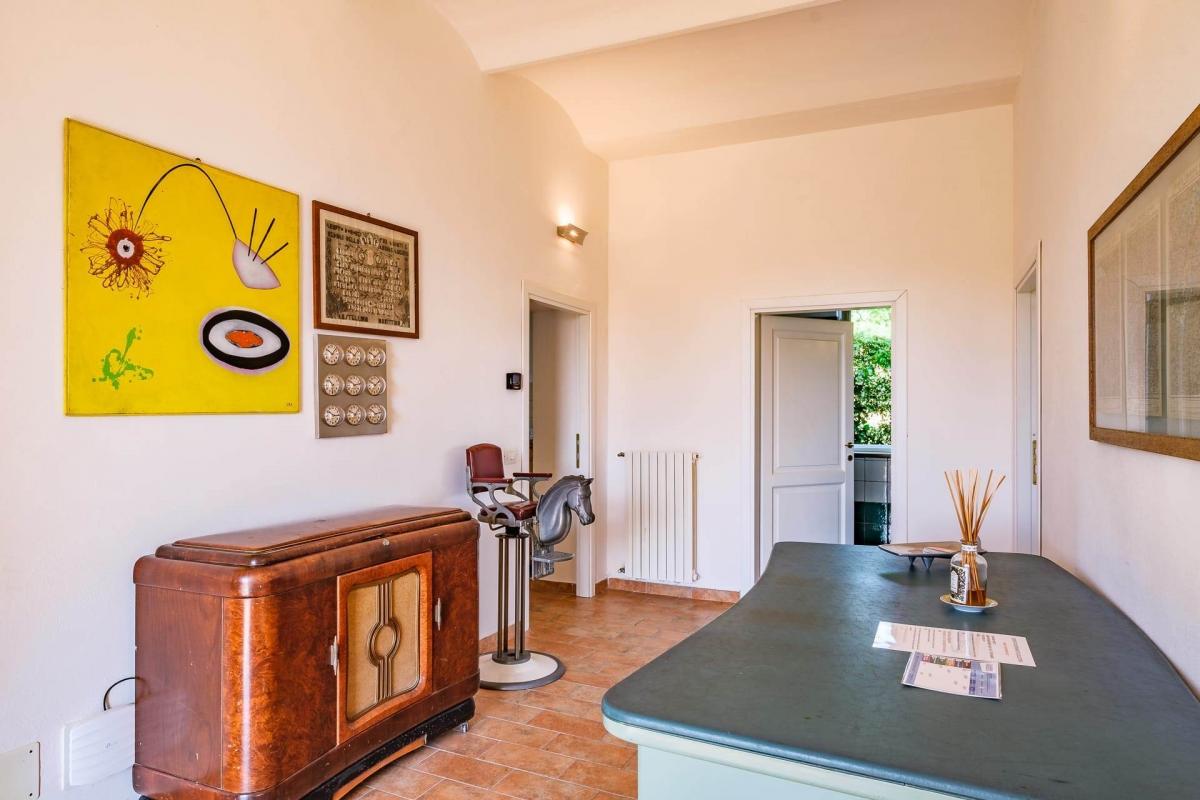 The house is surrounded by a 7,500 sqm garden, with an orchard and an 8x4 m swimming pool, perfect for relaxation and enjoying the views. There is also an agricultural annex used as storage, and a driveway (classified as category C/6) which has been converted into a 3-room apartment with a bathroom, ideal for guests or as additional living space.