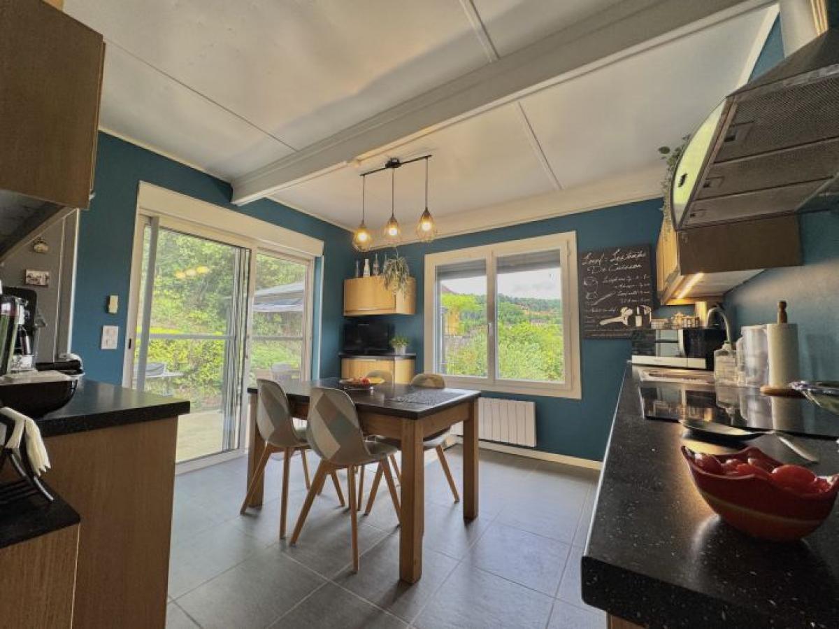 From here, you're led to a sleek, contemporary kitchen, thoughtfully designed and recently fitted, which extends onto a terrace offering stunning views across the valley.