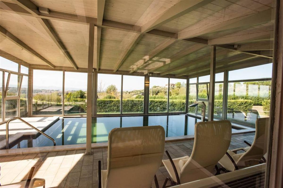 This estate, located between Umbria and Tuscany, was fully renovated in 2014. The main building, originally an Olivetan monastery from the 15th century, has been transformed into a refined agriturismo with 15 ensuite rooms, all equipped with modern amenities. The ground floor features a reception area, TV lounge, bar, wine cellar, professional kitchen, bathrooms, a reading/game room, and an ancient refectory adapted into a 70-seat restaurant.