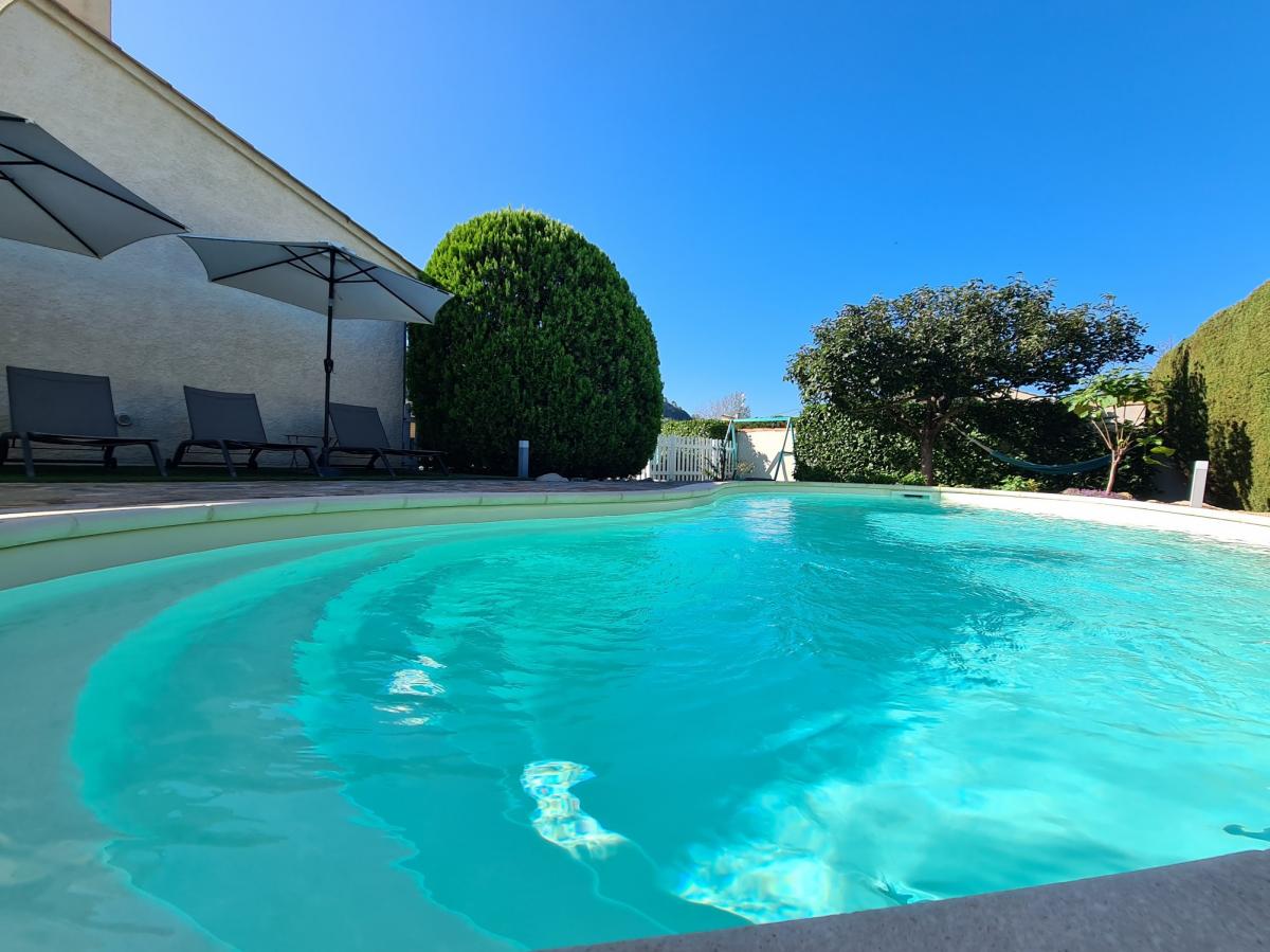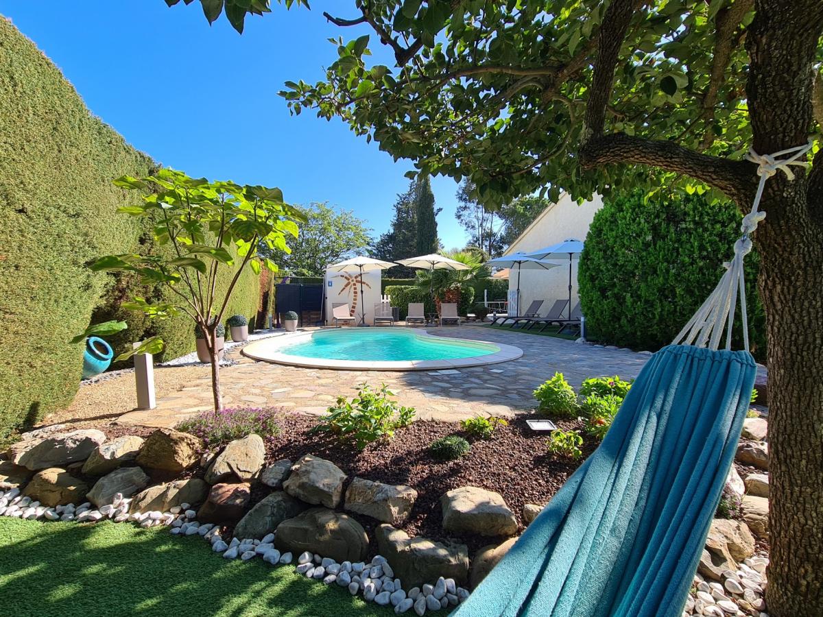 Exterior = Magnificent land of 1064 m2, perfectly maintained, with zenitude and sobriety + heated chlory pool (7.5m x 3.5m, 1.60m deep) + pool house + terrace of 90 m2 with store + petanque area + well with an electric pump system + wellness area of 19 m2 (jaccuzzi, shower, sauna and reversible air conditioning) + chalet of 12 m2 (bikes/tools:) + private terrace for each gite.